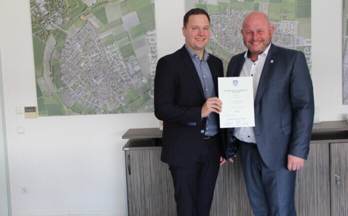 „Ich freue mich sehr, dass ich heute diese Urkunde überreichen kann. Als Irene Mougoui in den Ruhestand ging, hat sie große Fußstapfen hinterlassen. Doch Alexander Schaper hat die an ihn gestellten Erwartungen nicht nur erfüllt, sondern übertroffen“, erklärte Bürgermeister Kretschmann. Unter Schaper als Fachbereichsleiter seien mit den Haushalten 2023 und 2024 mittlerweile zwei Haushalte zur vollsten Zufriedenheit erarbeitet worden. Doch nicht nur das: „Ich erlebe, dass innerhalb des Fachbereichs Finanzen, aber auch in der Zusammenarbeit mit den anderen Fachbereichen eine sehr kooperative und kollegiale Stimmung herrscht“, betonte der Bürgermeister und ergänzte: „Ich habe großes Vertrauen in ihn.“