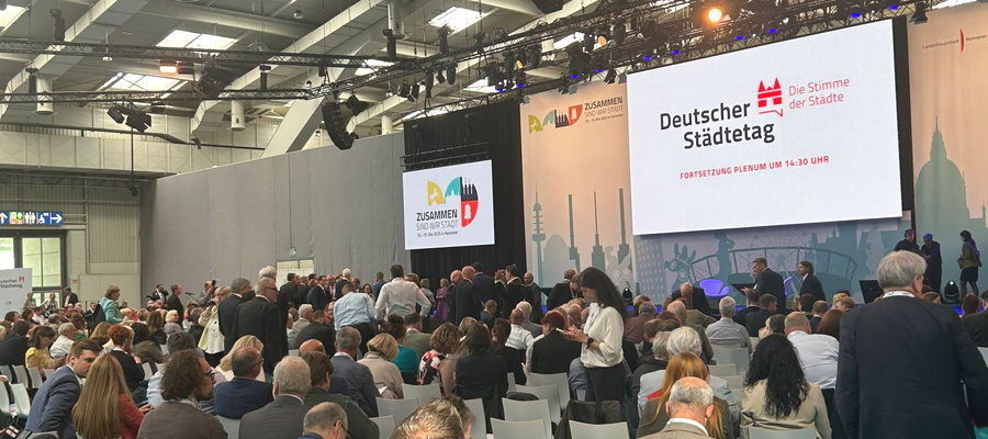 Mit der Forderung nach einer Stärkung der kommunalen Finanzen, mehr Gestaltungsfreiheit bei der Umsetzung von Projekten und für einen weiteren Ausbau der digitalen Verwaltung ging am gestrigen Donnerstag (15.) die 43. Hauptversammlung des Deutschen Städtetages in Hannover zu Ende. Unter dem Motto „Zusammen sind wir Stadt“ betonten die anwesenden Delegierten, unter ihnen Oberbürgermeister Hanno BenzBürgermeisterin Barbara AkdenizStadtkämmerer André Schellenberg sowie die Stadträte Michael Kolmer und Paul Georg Wandrey, die Bedeutung der Kommunen für die Wahrnehmung von Politik und Demokratie. Oberbürgermeister Benz sprach von einem „zukunftsweisenden und verbindenden Kongress der kommunalen Familie mit klaren Botschaften an Bund und Länder“.