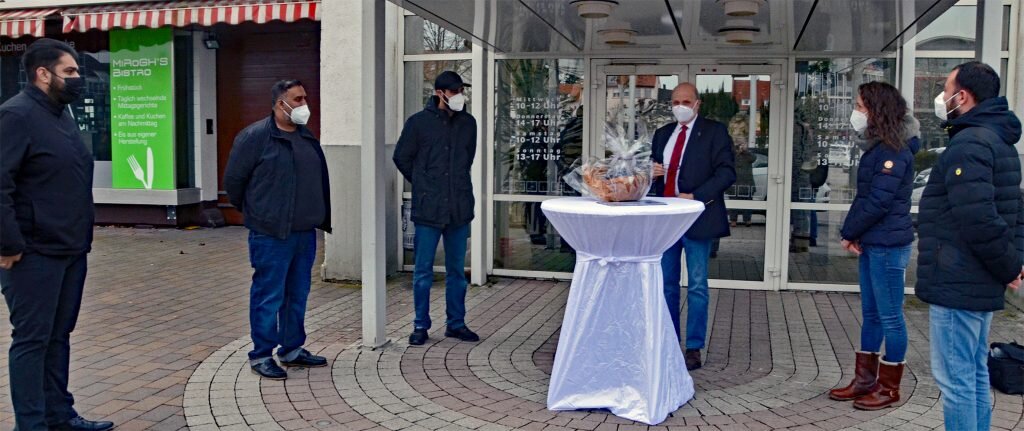 Zum Hintergrund: Als die Unterkunft Am Hallenbad 13 im Januar 2021 bedingt durch den Ausbruch von Corona-Infektionen durch das Gesundheitsamt für gut drei Wochen unter Quarantäne stand, bewies die Ahmadiyya-Gemeinde, insbesondere deren Jugendorganisation, bereits zum zweiten Mal spontane Hilfsbereitschaft. Auf Anfrage des SIB erklärte sich die Gemeinde bereit, die Versorgung mit Speisen inklusive Ausliefern der Care-Pakete für die etwa 40 Bewohner der Gemeinschaftsunterkunft zu übernehmen. Rund zehn ehrenamtliche Helfer erledigten die Einkäufe, bereiteten das Essen zu und organisierten den Transport der Speisen in die Unterkunft. Dank der ehrenamtlich geleisteten Hilfe musste die Stadt Groß-Gerau lediglich die Kosten für die besorgten Lebensmittel tragen.