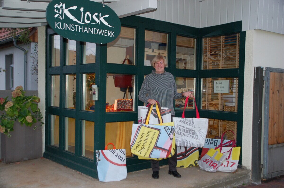 Doch was kann man mit den Bannern nach Gebrauch noch anfangen? Zum Wegwerfen sind die großen Kunststoffbahnen aus dem feinen Netzgewebe viel zu schade, dachte sich die Gemeindeverwaltung. Und so entstand die Idee, einfache Taschen aus den Bannern nähen zu lassen – ähnlich wie die Upcycling-Produkte aus alten LKW-Planen oder Feuerwehrschläuchen. Elke Reuter vom Kiosk Kunsthandwerk in Seeheim, die eigentlich auf die Verarbeitung von Wollfilz spezialisiert ist, hat sich schließlich an die Umsetzung der Idee gewagt und den Werbebannern zu einem zweiten Leben als Bannertasche verholfen. Es gibt sie als kleinere und größere Einkaufstaschen mit kurzen oder langen Henkeln zum Preis von 15 und 20 Euro. Erstmals käuflich zu erwerben sind die Unikate an einem eigenen Bannertaschen-Marktstand beim Seeheimer Wochenmarkt am Samstag, dem 12. November. Danach sind sie im Kiosk Kunsthandwerk in der Wilhelm-Leuschner-Straße 50 oder auch im kommunalen Bürgerbüro erhältlich. Die Bannertasche aus Seeheim-Jugenheim – ein nachhaltiges wie exklusives Geschenk unter anderem fürs kommende Weihnachtsfest.