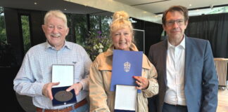 OB Hanno Benz übergibt Freundschaftsplaketten an Dagmar Metzger und Walter Felix