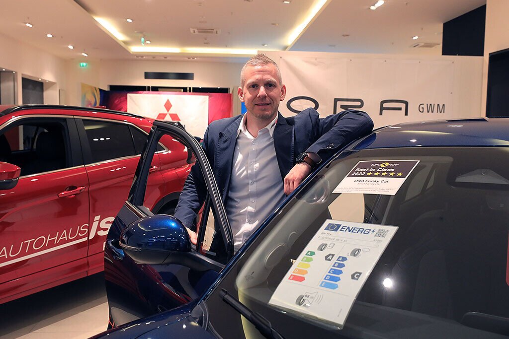 „Lassen Sie sich von der Zukunft begeistern, schauen Sie bei uns vorbei!“ sagt Geschäftsführer Peter Erbach. Wer sich über den ORA Funky Cat im Autohaus informieren