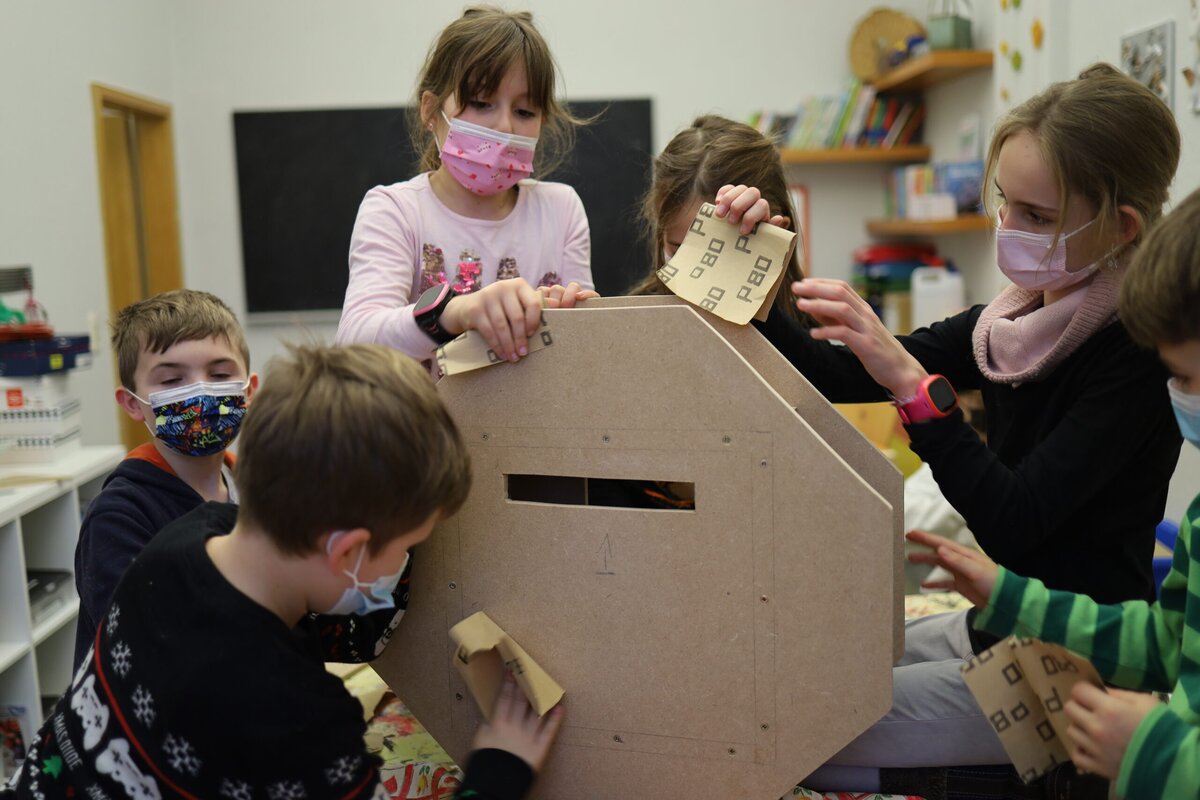 In einem weiteren Workshop wollen die Kinder nun mit Spitzer und Faßnacht noch die Weltkugel mit der bunten Menschenkette um den Globus aufmalen, wie im Siegerentwurf abgebildet, und zudem den Ständer anbringen. Zukünftig soll der bunte Briefkasten dann in der Grundschule stehen, damit die Schüler*innen dort Anregungen und Ideen für die Grundschule, aber auch Hinweise auf Dinge, die sie nicht gut finden, sammeln können.