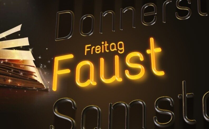 Faust gilt inhaltlich und angesichts der Textfülle gemeinhin als „schwerer Stoff“. Die BüchnerBühne bietet mit ihrer Reihe FreitagsFaust einmal monatlich unterhaltsame und verständliche Ausschnitte aus dem Gesamtwerk sowie Interpretationen und Hinweise zur Entstehungsgeschichte.