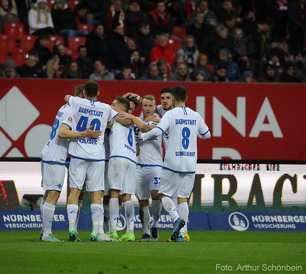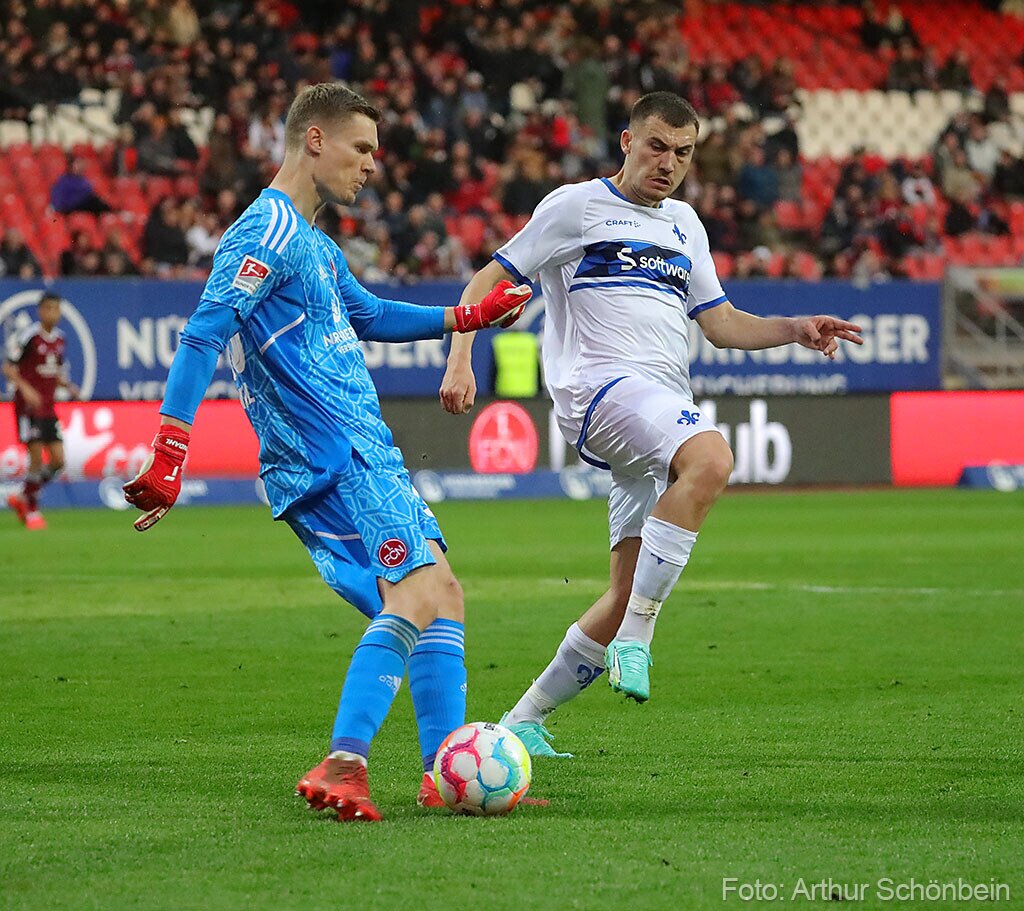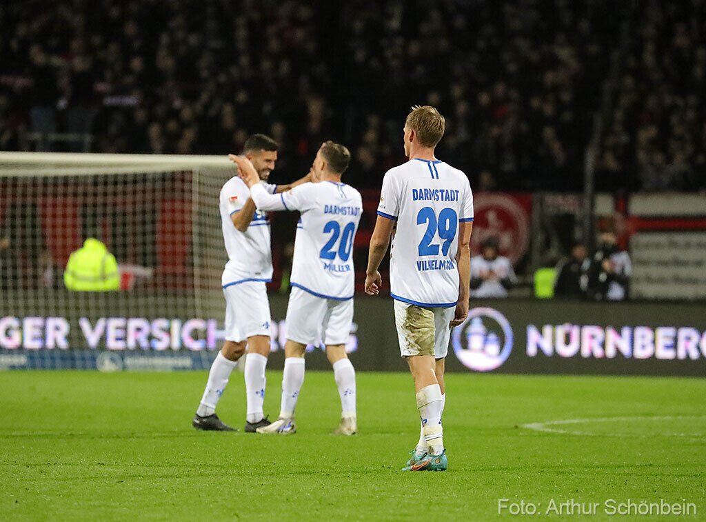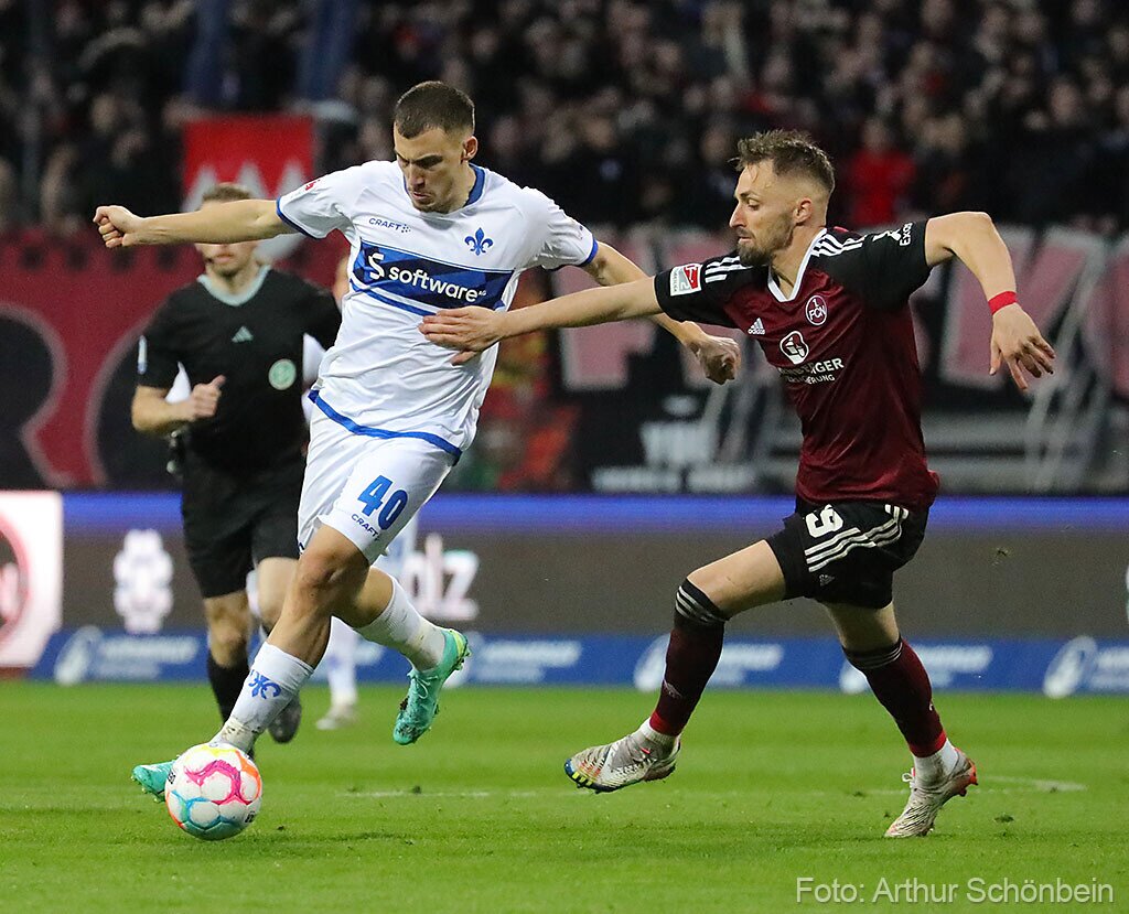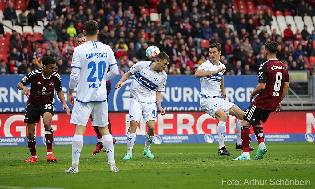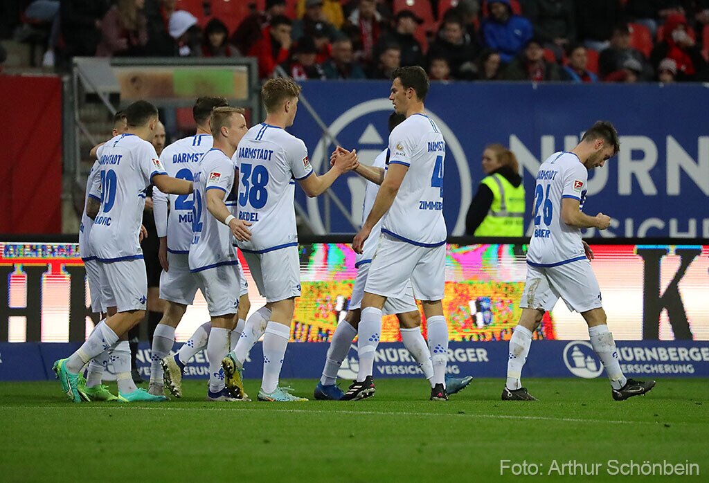 Darmstadt 98 gewinnt auch beim 1. FC Nürnberg 1. April 2023 Die Bilder werden präsentiert von Autohaus Iser Riedstadt Fotografiert von Arthur Schönbein 1 von 42