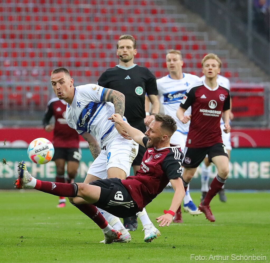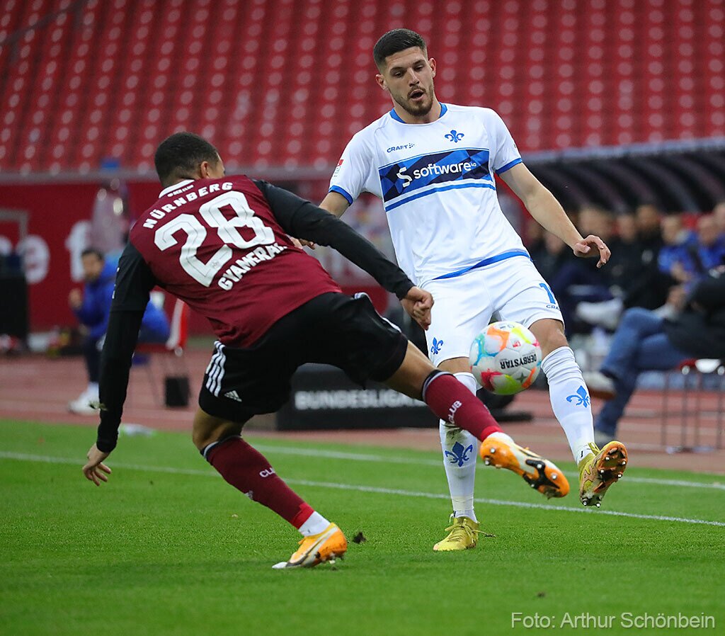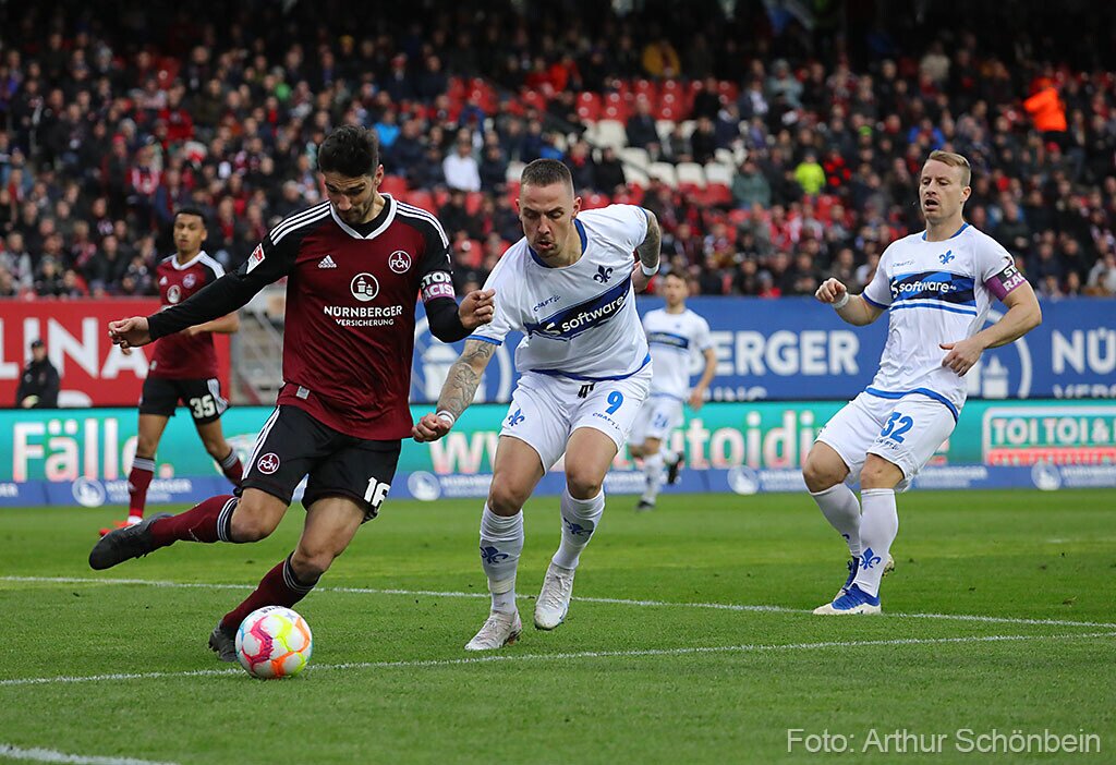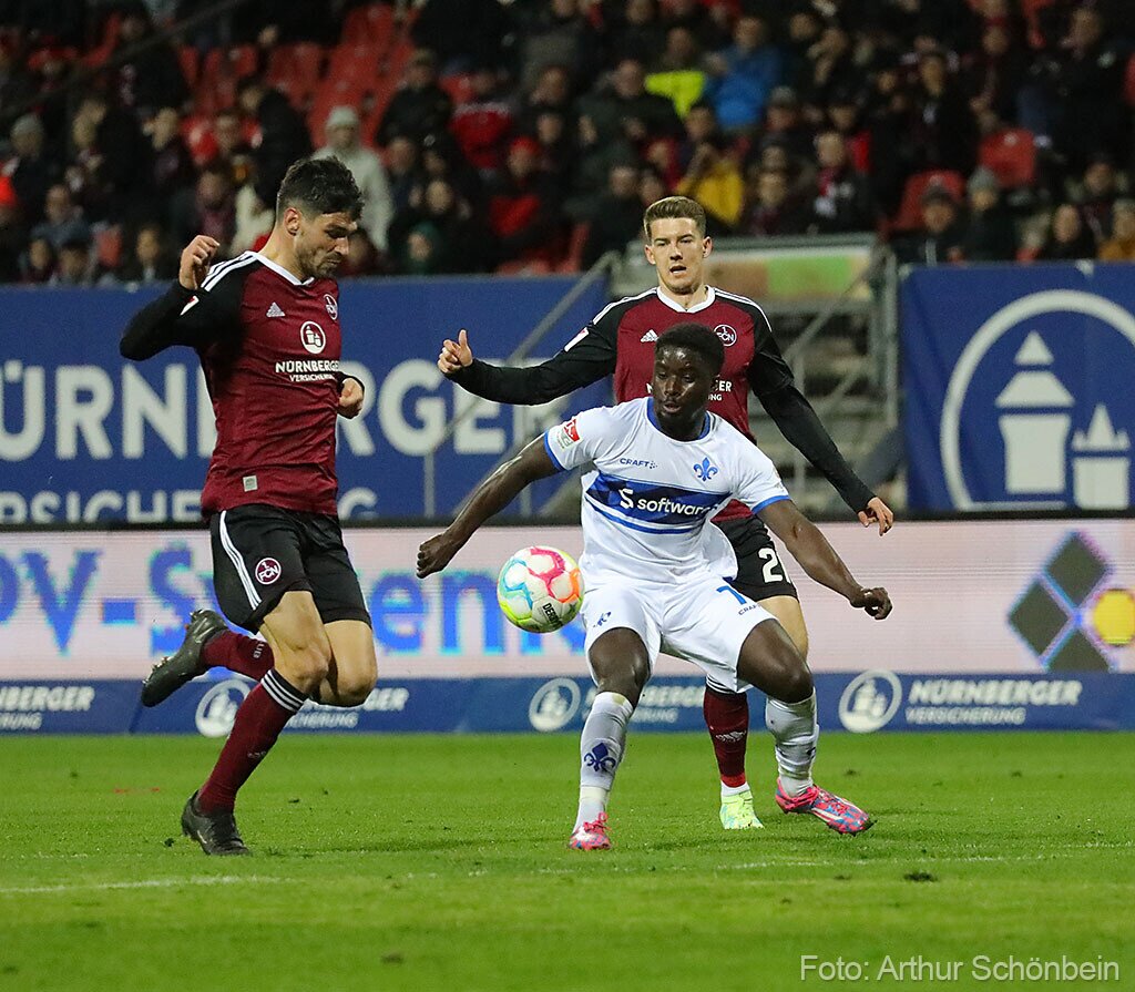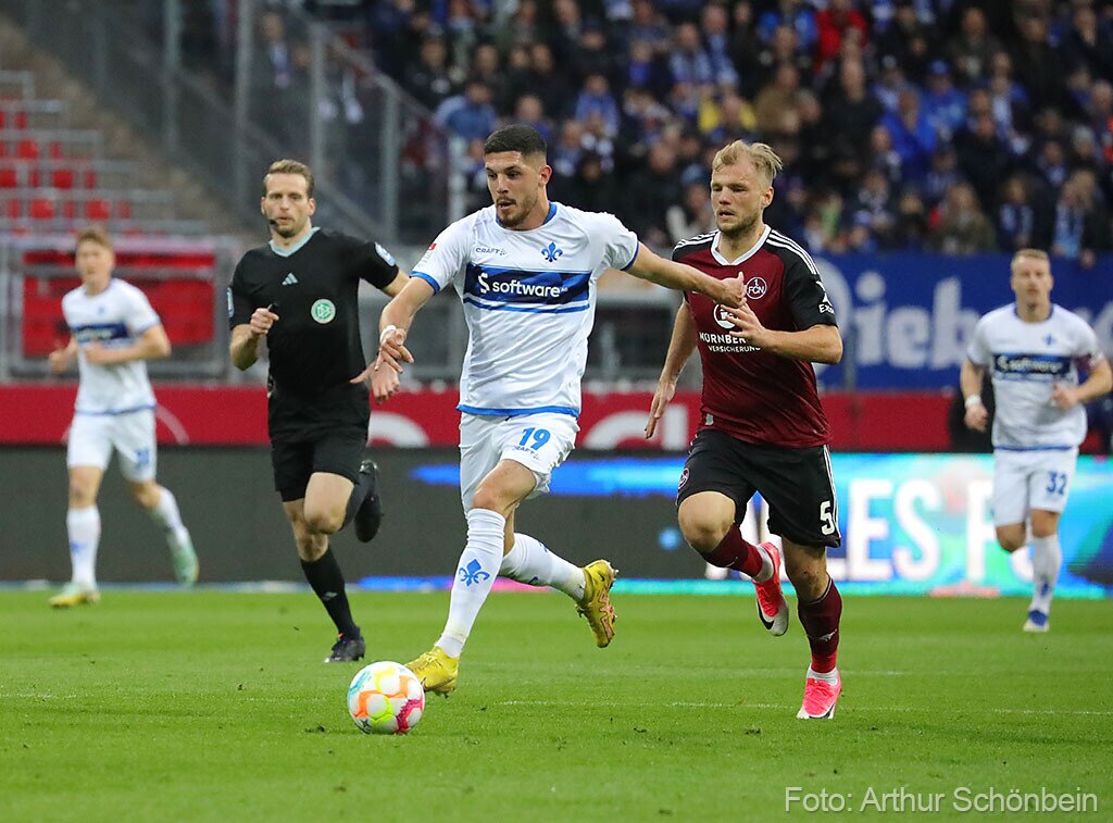 Darmstadt 98 gewinnt auch beim 1. FC Nürnberg 1. April 2023 Die Bilder werden präsentiert von Autohaus Iser Riedstadt Fotografiert von Arthur Schönbein 1 von 42