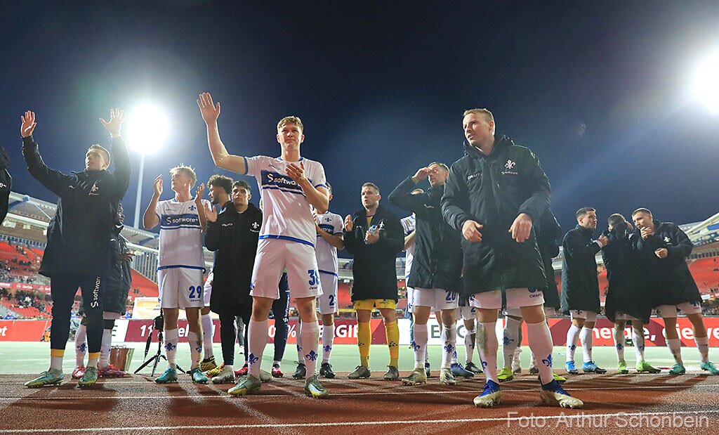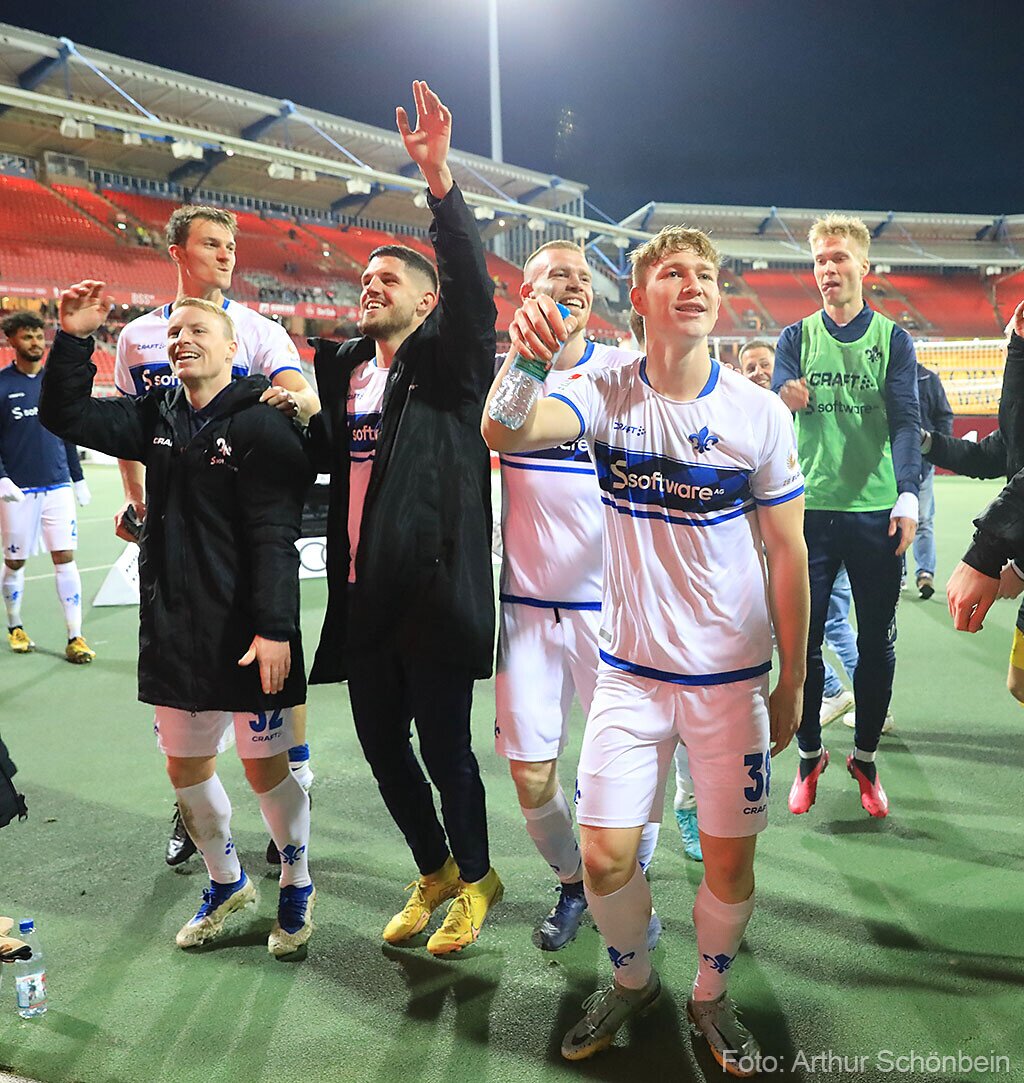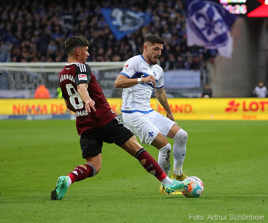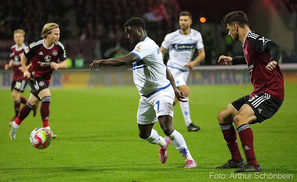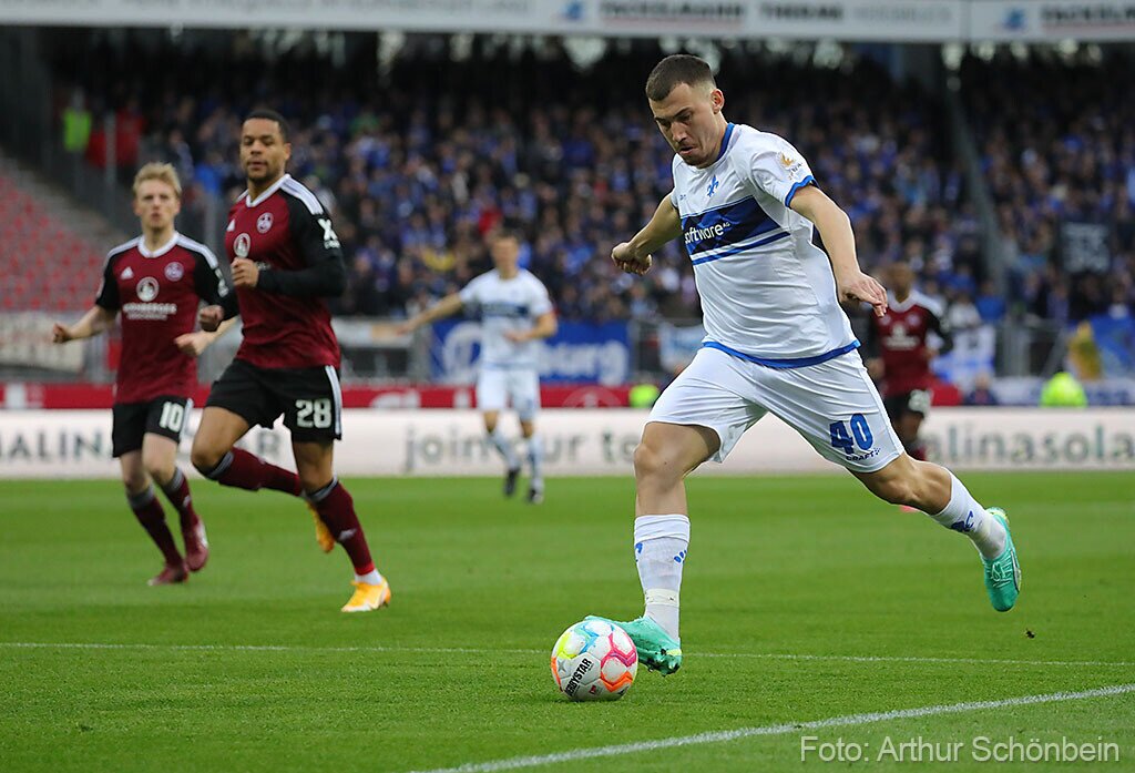Darmstadt 98 gewinnt auch beim 1. FC Nürnberg 1. April 2023 Die Bilder werden präsentiert von Autohaus Iser Riedstadt Fotografiert von Arthur Schönbein 1 von 42