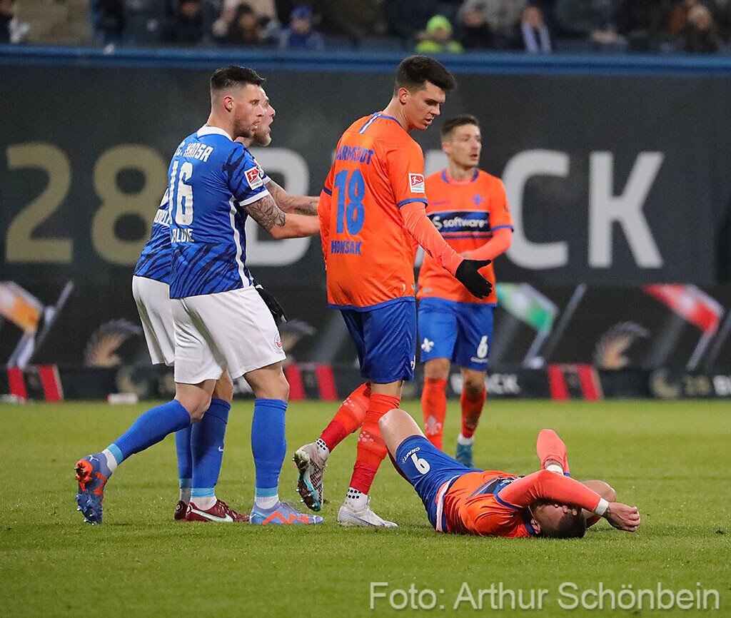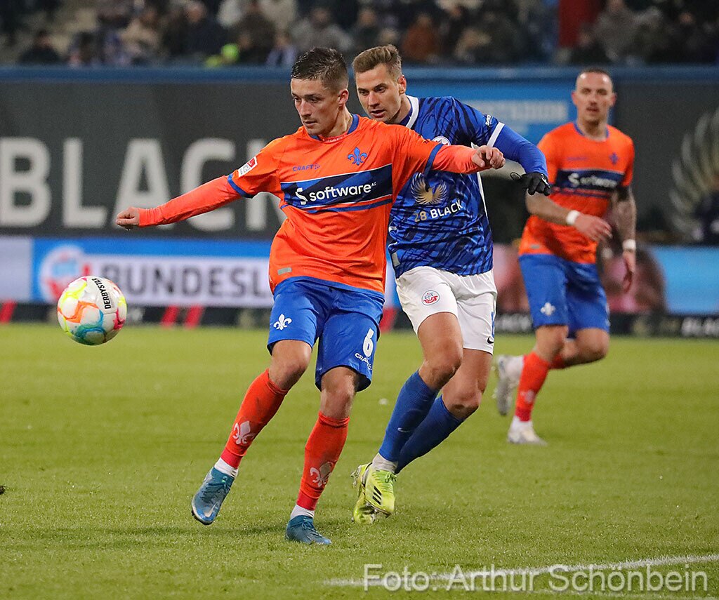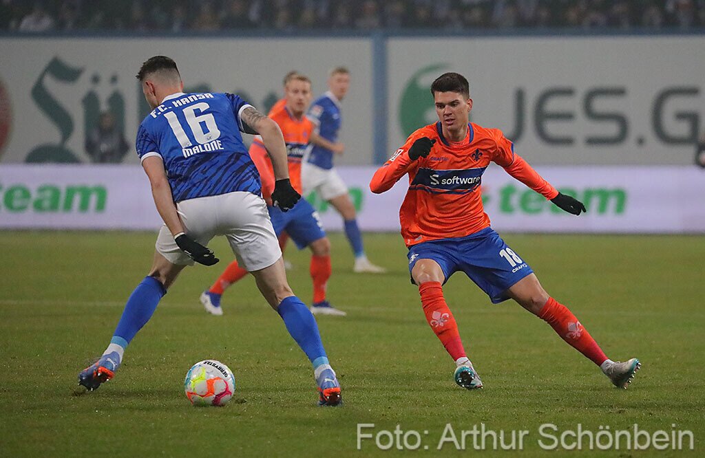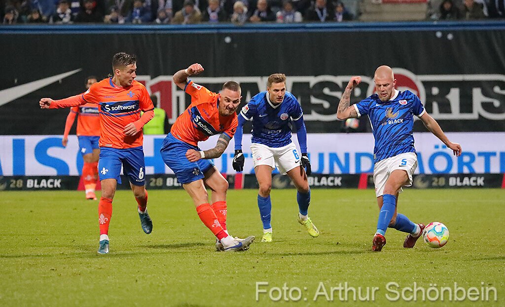 Darmstadt 98 gewinnt bei Hansa Rostock 19. Februar 2023 Die Bilder werden präsentiert von Autohaus Iser Riedstadt Fotografiert von Arthur Schönbein 1 von 47