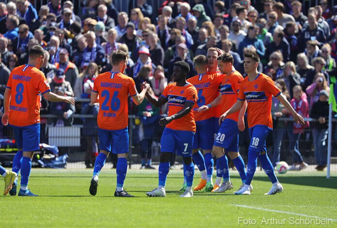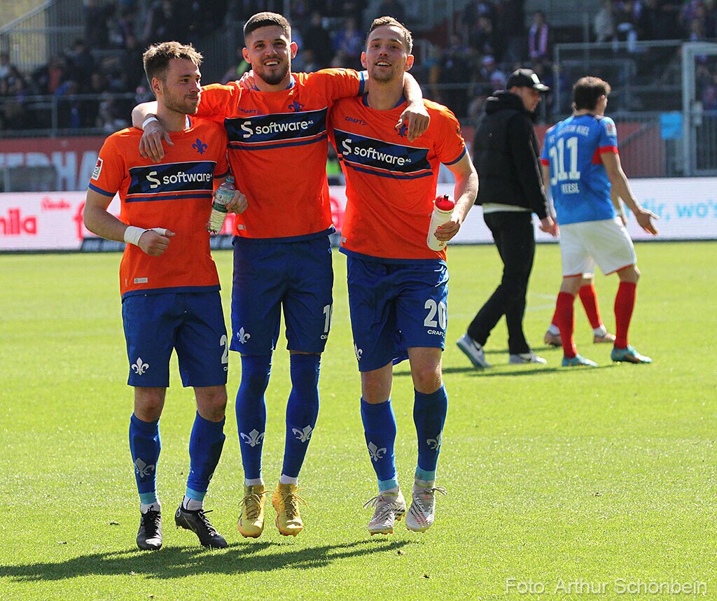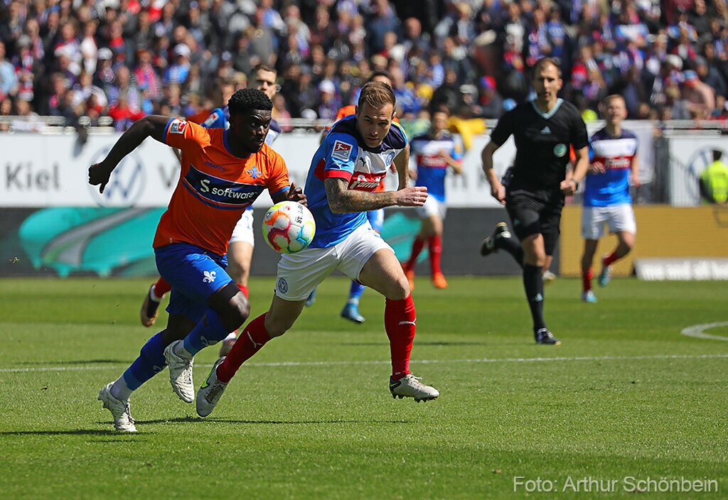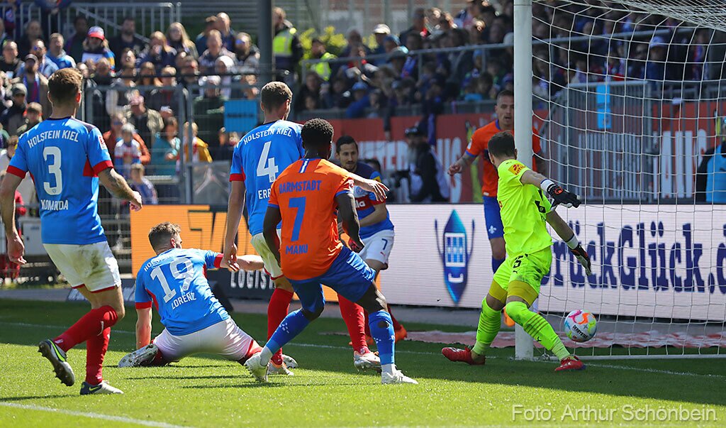Darmstadt 98 gewinnt bei Holstein Kiel 30. April 2023 Die Bilder werden präsentiert von Autohaus Iser Riedstadt Fotografiert von Arthur Schönbein 1 von 44