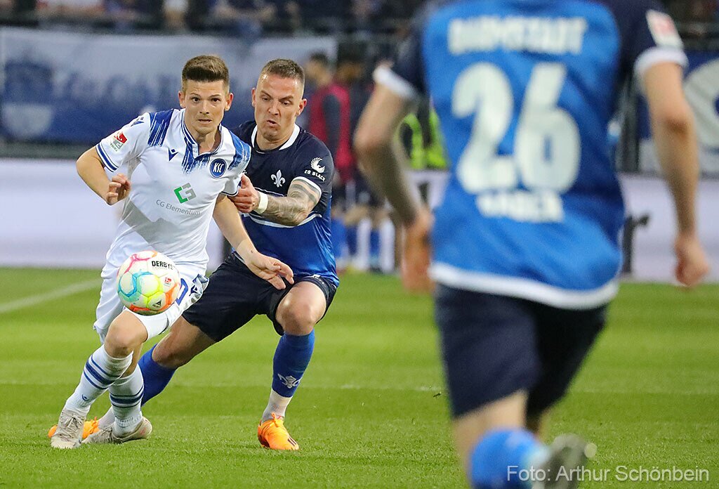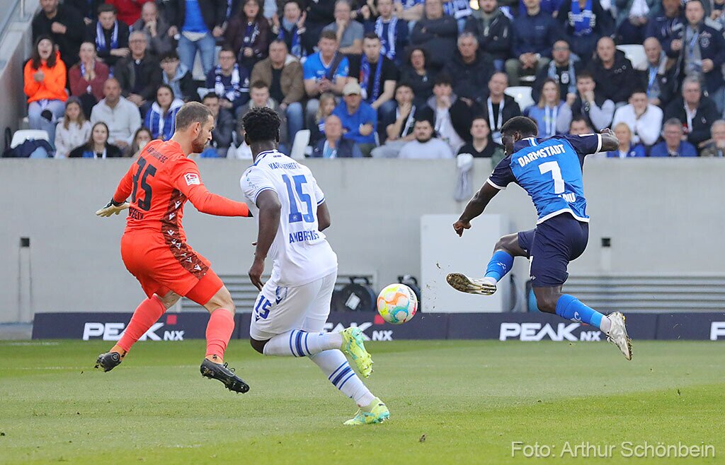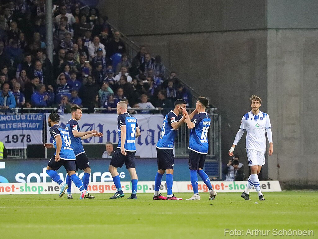 Darmstadt 98 gewinnt gegen den Karlsruher SC 22. April 2023 Die Bilder werden präsentiert von Autohaus Iser Riedstadt Fotografiert von Arthur Schönbein 1 von 52