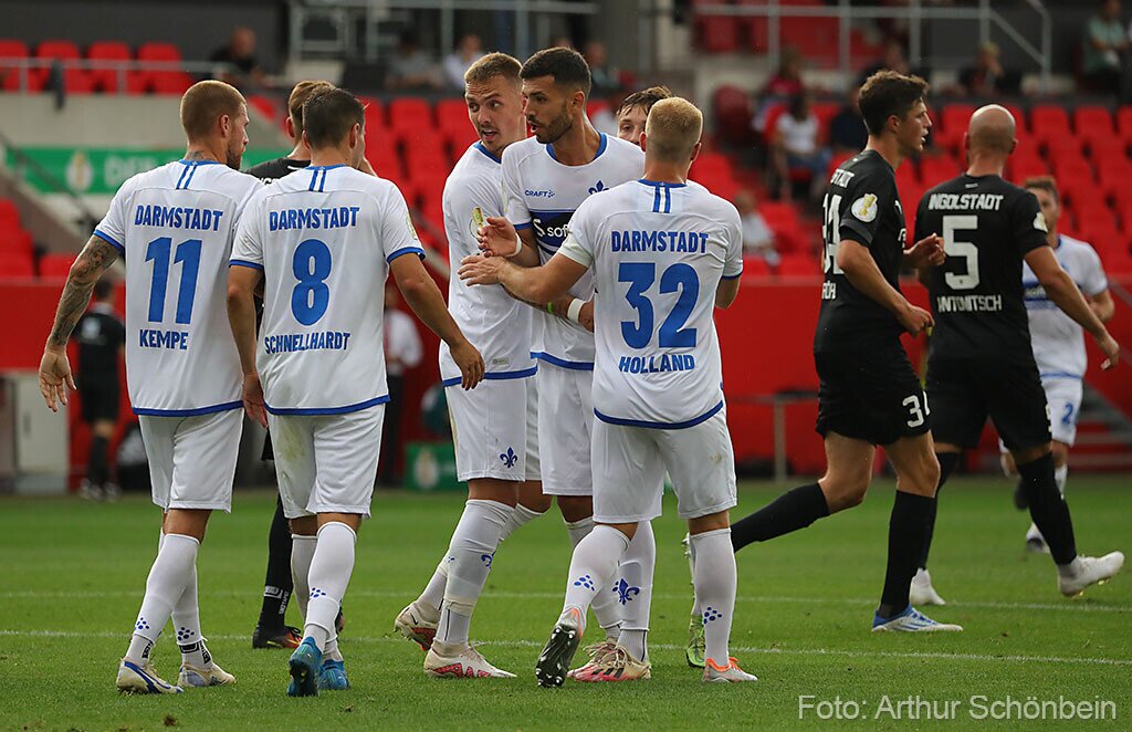 Darmstadt 98 gewinnt im DFB-Pokal beim FC Ingolstadt 2. August 2022 Die Bilder werden präsentiert von Autohaus Iser Riedstadt Fotografiert von Arthur Schönbein 1 von 41