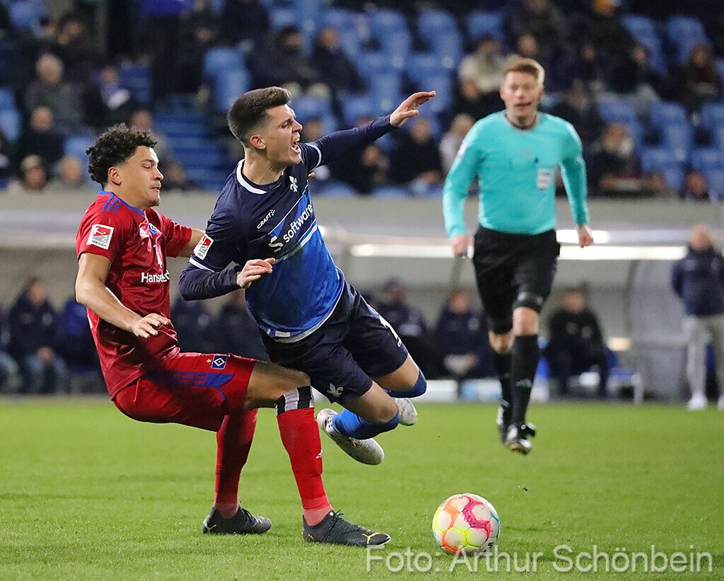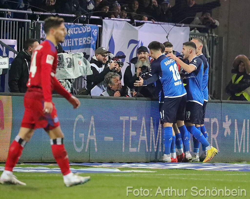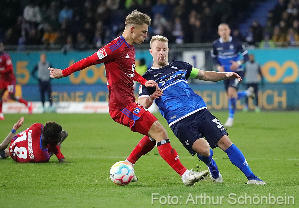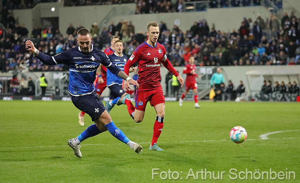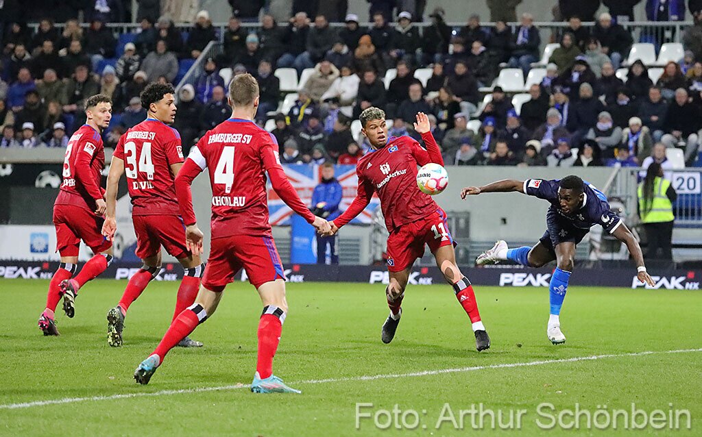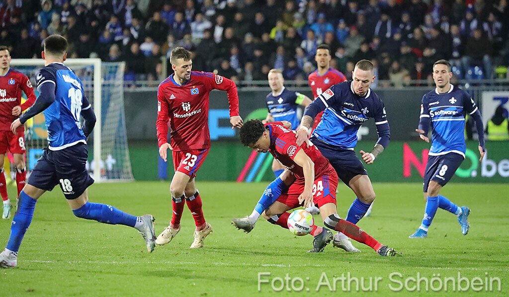 Darmstadt 98 punktet auch gegen den HSV 26. Februar 2023 Die Bilder werden präsentiert von Autohaus Iser Riedstadt Fotografiert von Arthur Schönbein 1 von 64
