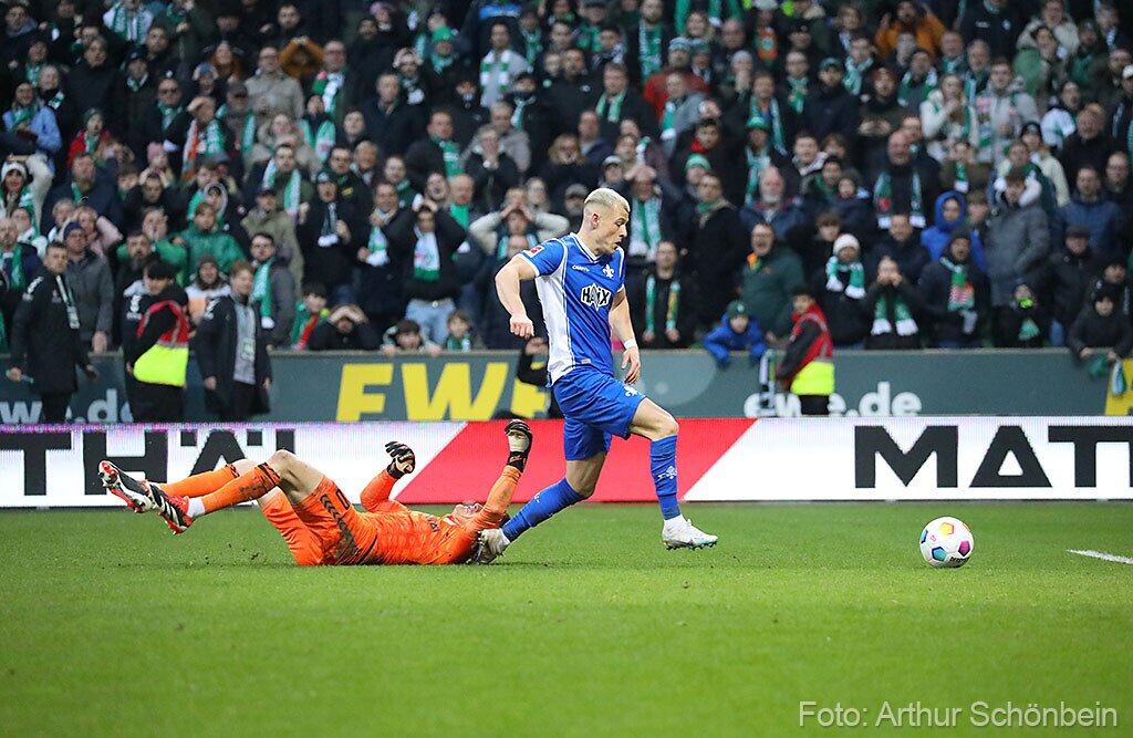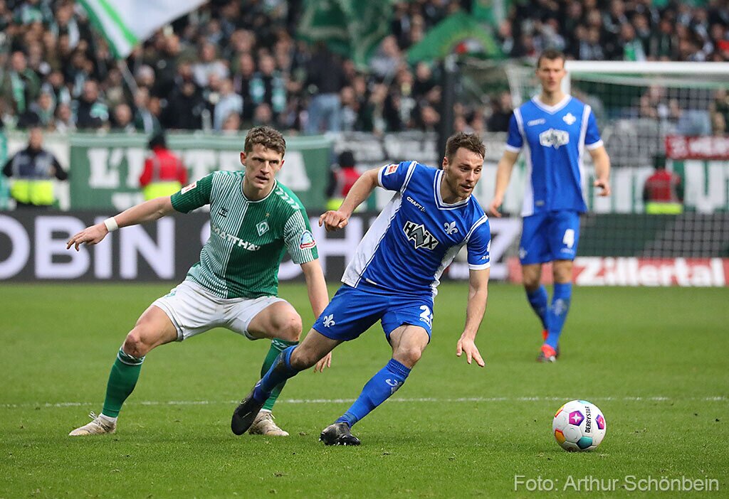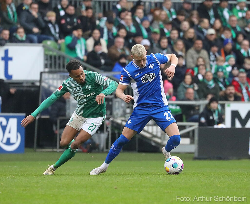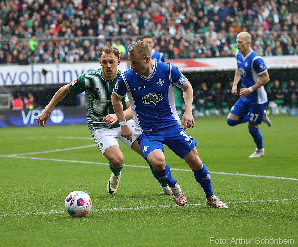 Darmstadt 98 punktet bei Werder Bremen 25. Februar 2024 Die Bilder werden präsentiert von Autohaus Iser Riedstadt Fotografiert von Arthur Schönbein 1 von 34