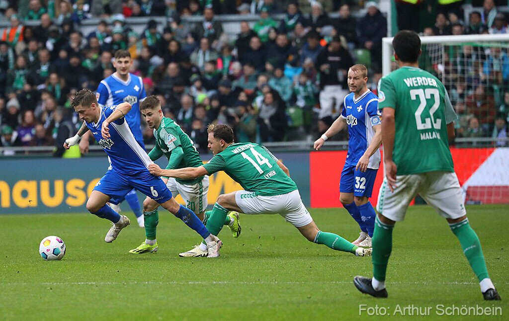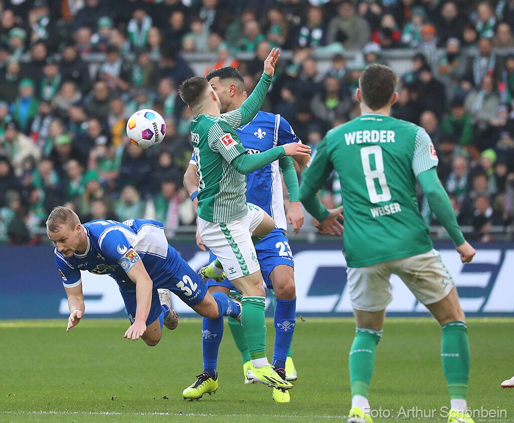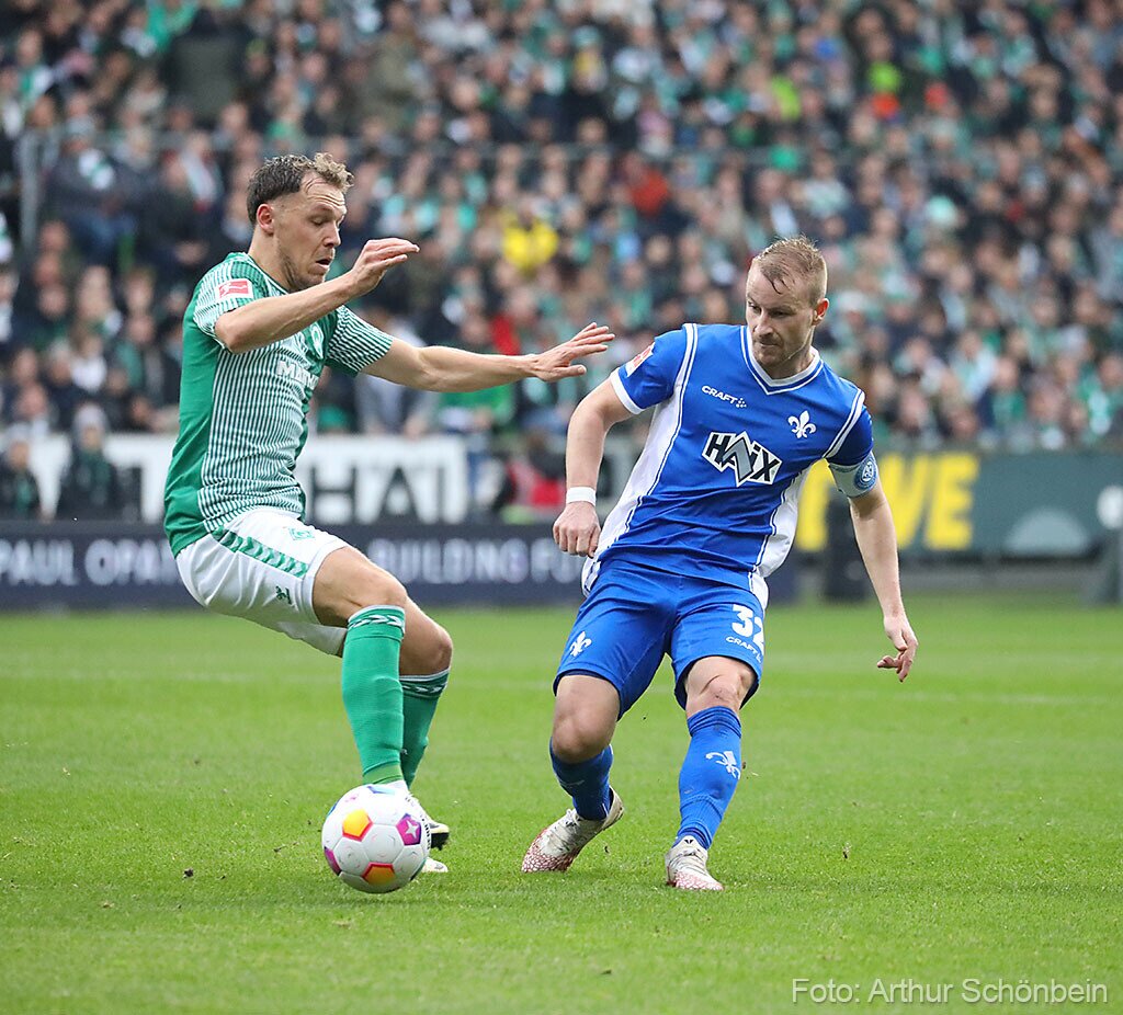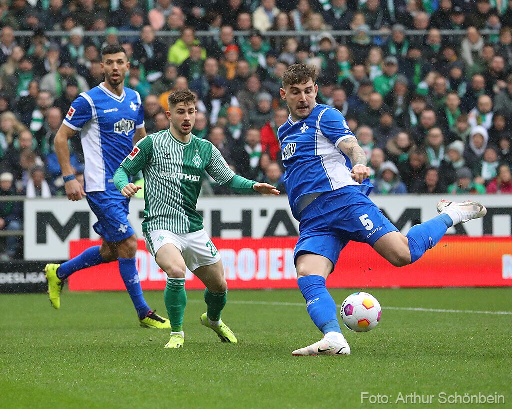 Darmstadt 98 punktet bei Werder Bremen 25. Februar 2024 Die Bilder werden präsentiert von Autohaus Iser Riedstadt Fotografiert von Arthur Schönbein 1 von 34