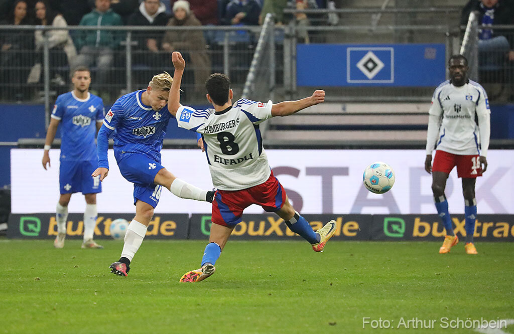 Darmstadt 98 punktet beim Hamburger Sportverein 9. Dezember 2024 Die Bilder werden präsentiert von Autohaus Iser Riedstadt Fotografiert von Arthur Schönbein 1 von 41