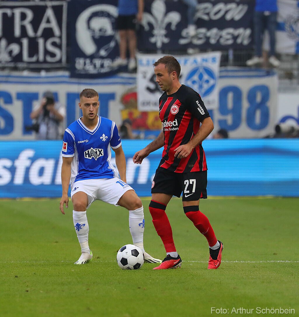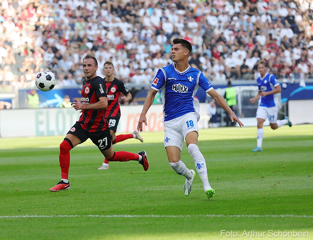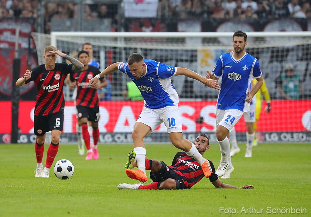 Darmstadt 98 verliert 1:0 bei Eintracht Frankfurt 21. August 2023 Die Bilder werden präsentiert von Autohaus Iser Riedstadt Fotografiert von Arthur Schönbein 1 von 25