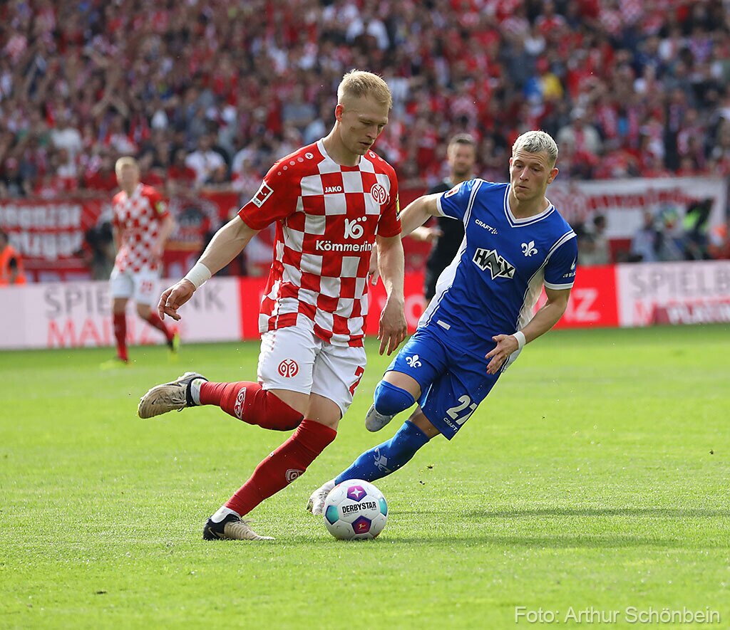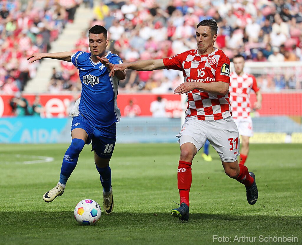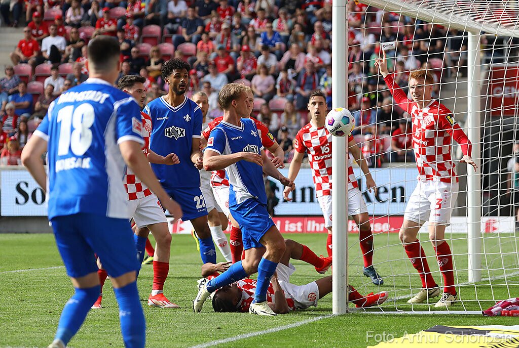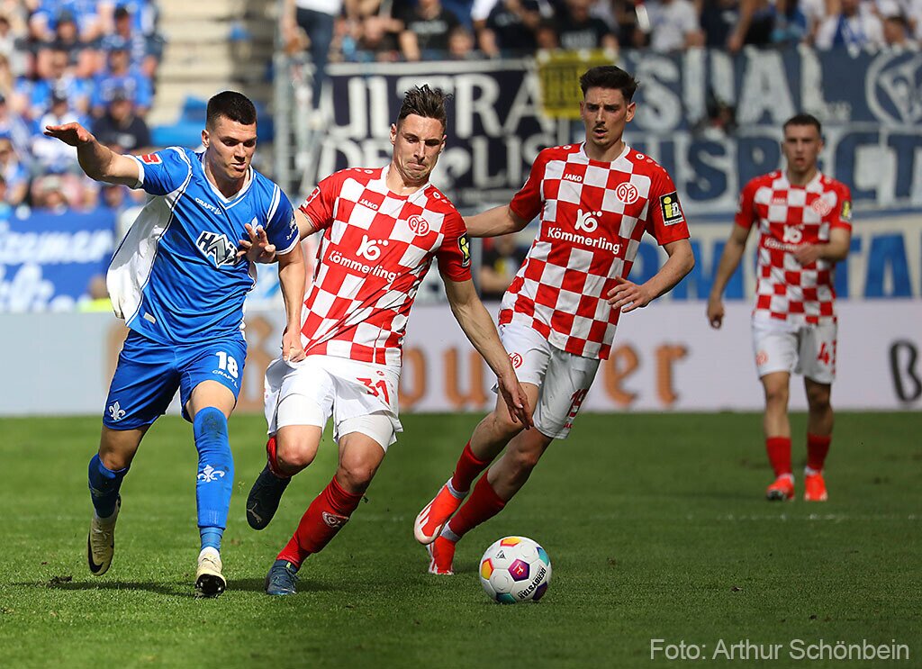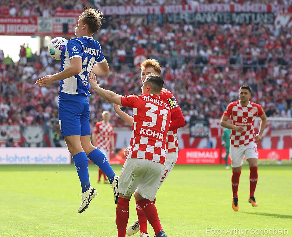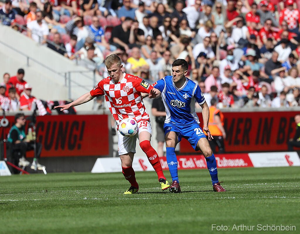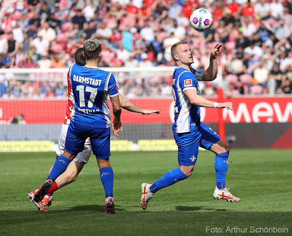 Darmstadt 98 verliert deutlich in Mainz 7. April 2024 Die Bilder werden präsentiert von Autohaus Iser Riedstadt Fotografiert von Arthur Schönbein 1 von 32