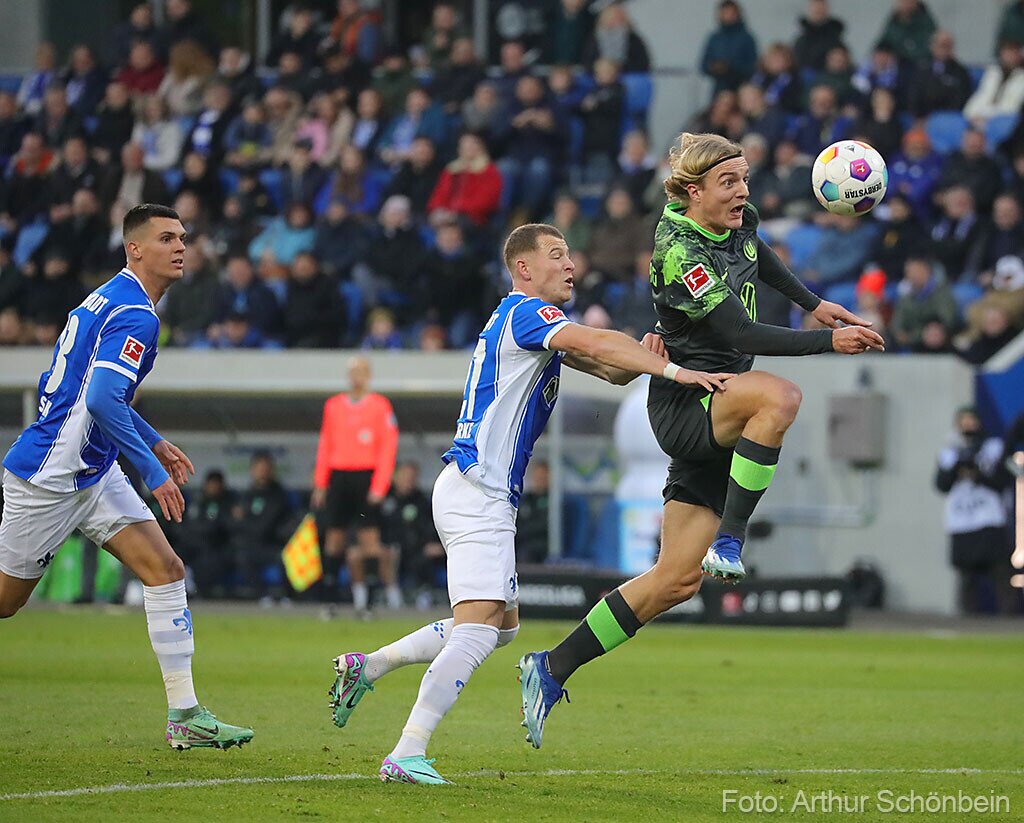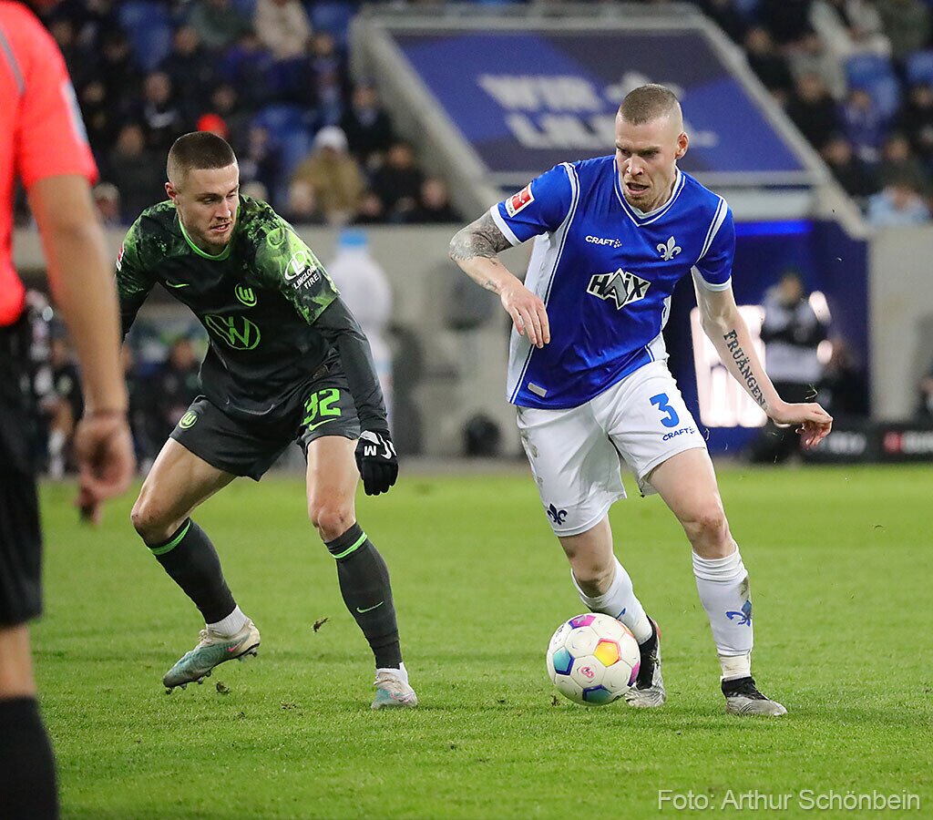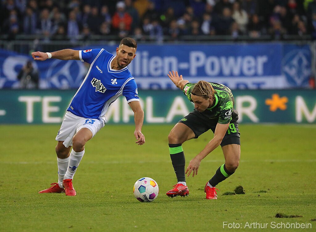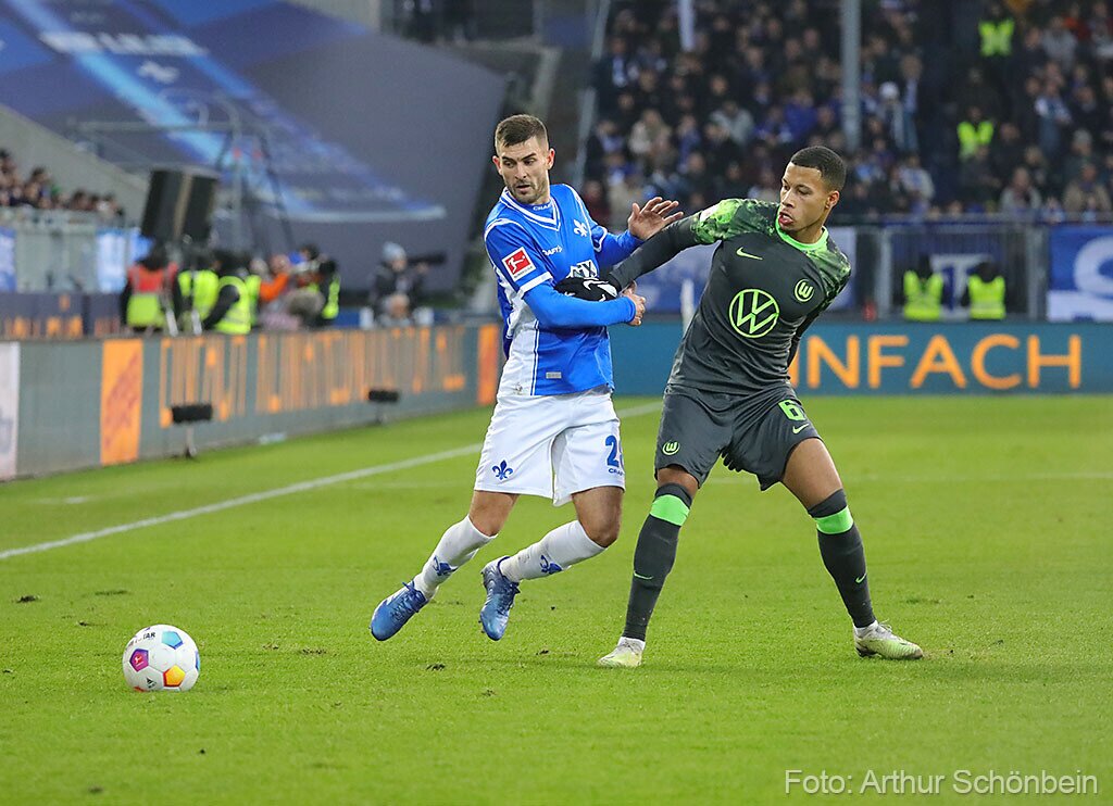 Darmstadt 98 verliert gegen den VfL Wolfsburg 17. Dezember 2023 Die Bilder werden präsentiert von Autohaus Iser Riedstadt Fotografiert von Arthur Schönbein 1 von 32