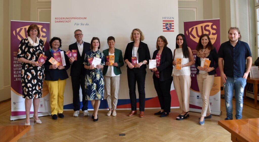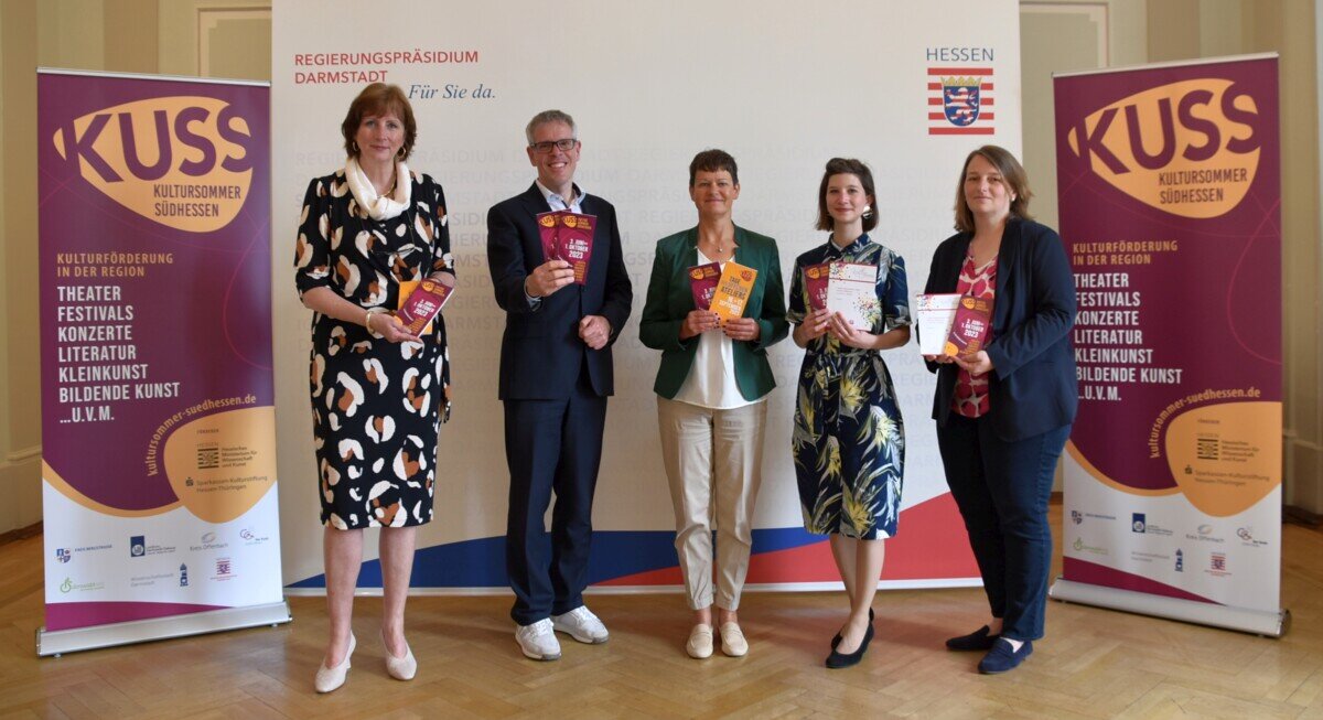 Heute wurde das umfangreiche Programm des 30. KUSS 2023 mit über 200 Veranstaltungen im Darmstädter Regierungspräsidium durch den KUSS-Vorsitzenden, Landrat Christian Engelhardt (Kreis Bergstraße), vorgestellt. Er bedankte sich zudem bei Regierungspräsidentin Brigitte Lindscheid für die Unterstützung durch das Land Hessen und bei Nicole Schlabach von der Sparkassen-Kulturstiftung Hessen-Thüringen für deren finanzielle Hilfe.
