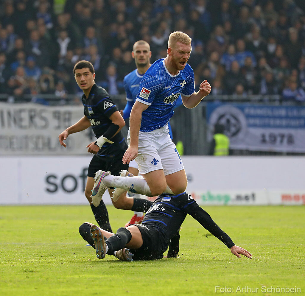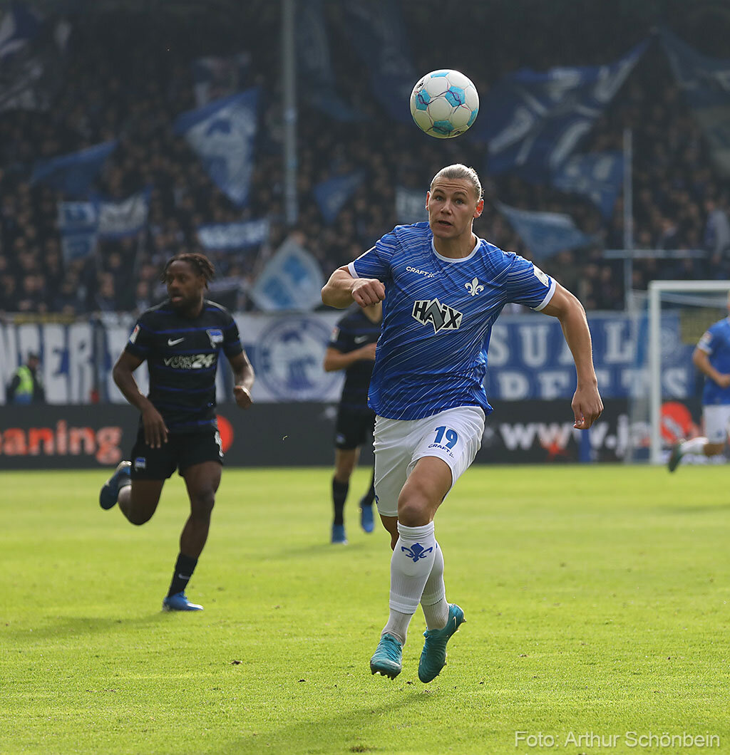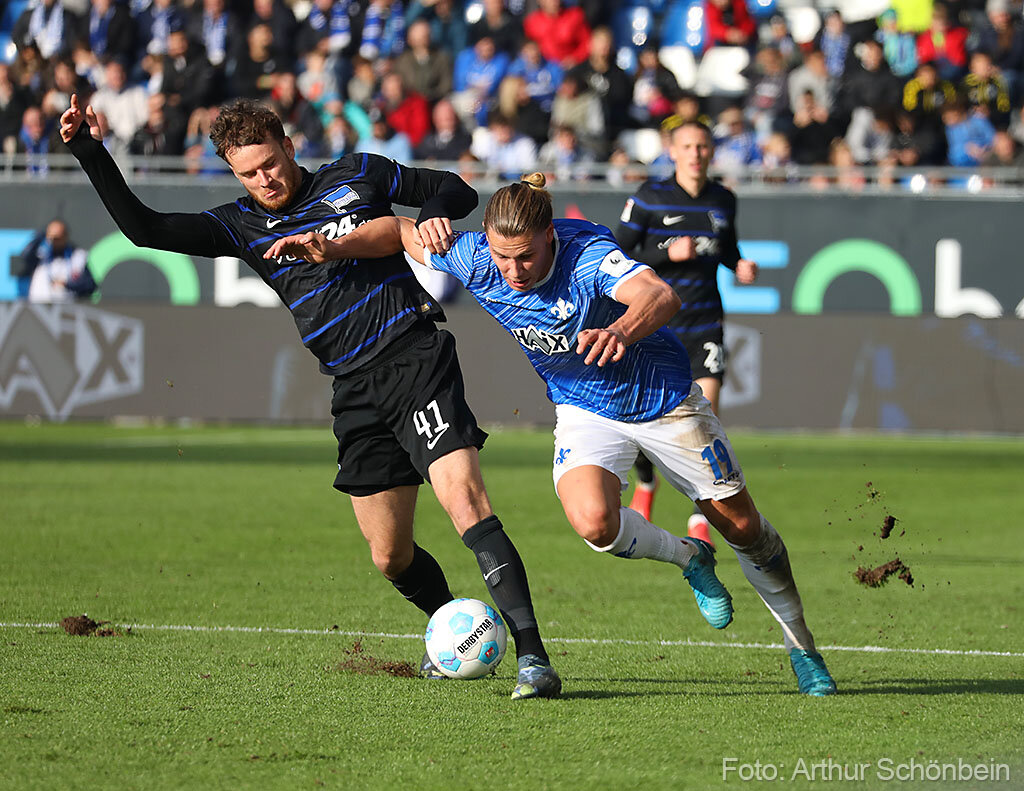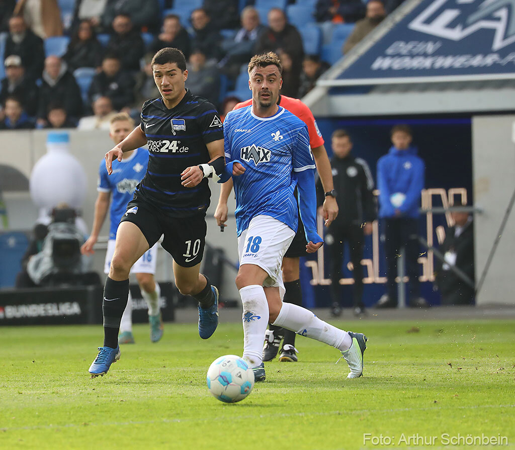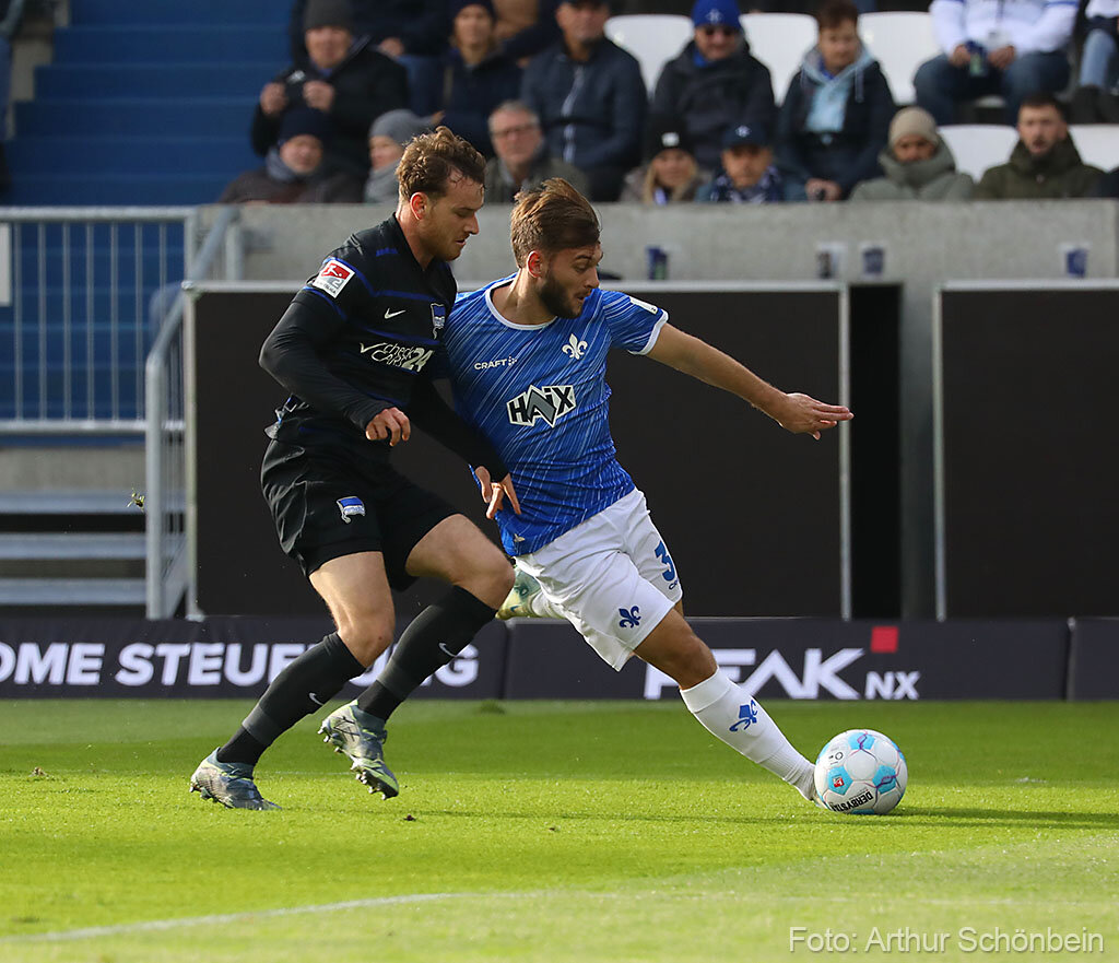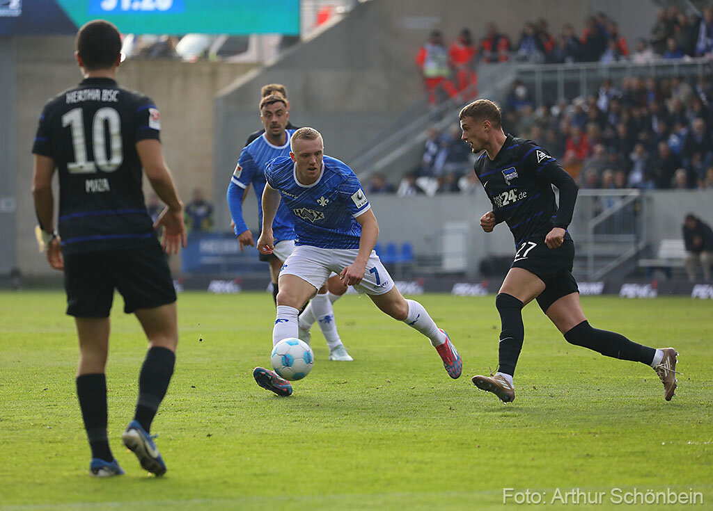 Der SV Darmstadt 98 gewinnt gegen Hertha BSC 10. November 2024 Die Bilder werden präsentiert von Autohaus Iser Riedstadt Fotografiert von Arthur Schönbein 1 von 45