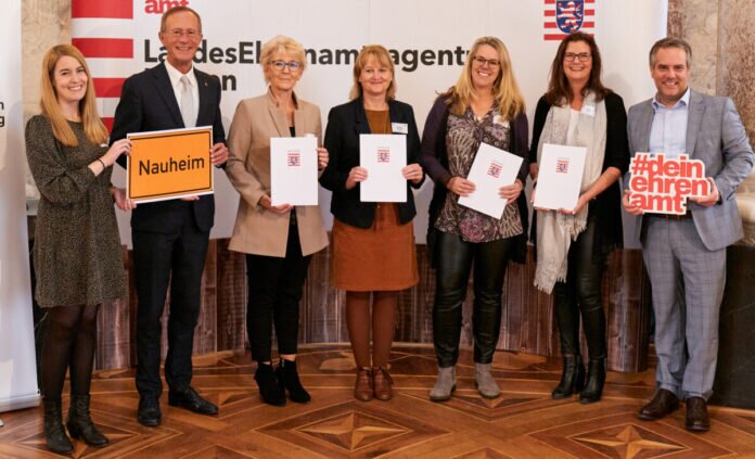 Für dieses Vorhaben konnte die Gemeinde Nauheim mit Elke Brechtelsbauer, Babsi Gerlach, Katja Hooke und Stefanie Peglow vier Interessierte Freiwillige gewinnen, die in diesem Jahr über das Förderprogramm „Engagement-Lotsen 2022“ in den Bereichen Freiwilligenmanagement und Engagementförderung in Kommunen geschult und qualifiziert wurden. Am vergangenen Samstag (12.11.) haben sie von Staatsminister Axel Wintermeyer ihr Abschlusszertifikat erhalten.