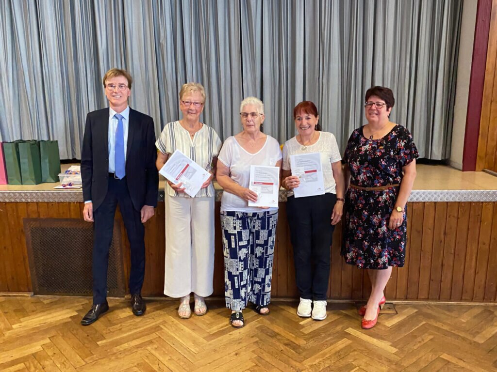 Nach den Ehrungen der 25- und 40-jährigen Mitgliedschaften, ehrte der Vorsitzende des Sängerkreises Groß-Gerau Hans Kopp zudem gemeinsam mit der Spartenleiterin Gesang Anette Däubener auch drei Sängerinnen, die bereits seit 50 Jahren im Chor singen. Hertha Glock, Herma Krauser und Dagmar Schaffner waren bei der Geburtstunde des Gemischten Chores vor 50 Jahren dabei – und singen nach wie vor.