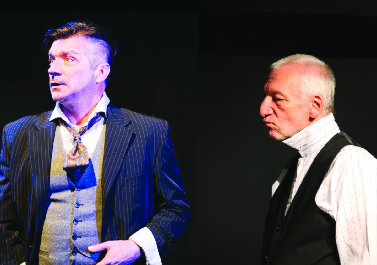 Oliver Kai Müller und Erich Schaffner (von links) während einer Probe von „Ein Inspektor kommt“. Foto: BüchnerBühne