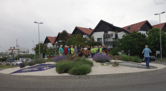 Nauheim – Das putzige Holzbienenensemble, dass sich schon einige Wochen auf dem Kreisel aufhält, hat nun offiziell sein Zuhause gefunden. In einer kleinen Feierstunde am vergangenen Dienstag, erinnerte in unterhaltsamer Manier, Bürgermeister Jan Fischer, wie es zu dem Projekt kam und umgesetzt wurde.