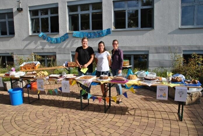 Im Anschluss hatten die dritten Klassen verschiedene Darbietungen vorbereitet, die den Neuankömmlingen vor der ebenfalls farbenfroh geschmückten Turnhalle präsentiert wurden. Als die Kinder sich dann zum ersten Mal mit ihren Lehrerinnen in die Klassenräume begaben, konnten sich Eltern, Großeltern und Verwandte am üppigen Kuchenbuffet stärken, welches die Eltern der zweiten Klassen unter Leitung des Schulelternbeirates bereitgestellt hatten.
