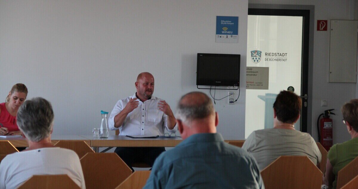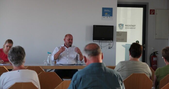 RIEDSTADT – „Heute treffen wir uns mal wieder in Präsenz“, begrüßte Bürgermeister Marcus Kretschmann im Sitzungssaal des Riedstädter Rathauses die Besucherinnen und Besucher des Bürgergesprächs. Als nach Ausbruch der Corona-Pandemie Anfang 2020 auch die regelmäßigen Bürgergespräche des Bürgermeisters in den einzelnen Stadtteilen nicht mehr möglich waren, hatte er die digitale Form des Austausches angeboten.