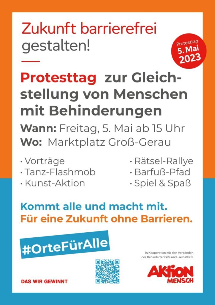 Im Aktionszeitraum von 22.04.2023 bis 07.05.2023 finden dieses Jahr deutschlandweit mehr als 500 verschiedene Aktionen und Veranstaltungen statt. „Wir rufen am 5. Mai zu einem lauten Protest auf, damit Barrierefreiheit künftig von Anfang an mitgedacht wird. Bei jeder Haltestelle, jeder Webseite und jedem Formular“, sagt Christina Marx, Sprecherin der Aktion Mensch. Eine gleichberechtigte Teilhabe muss für alle gelten – deshalb unterstützt die Aktion Mensch die Aktivitäten zum Protesttag. Sie bündelt das Engagement und stellt Förder- sowie Aktionsmittel zur Verfügung.