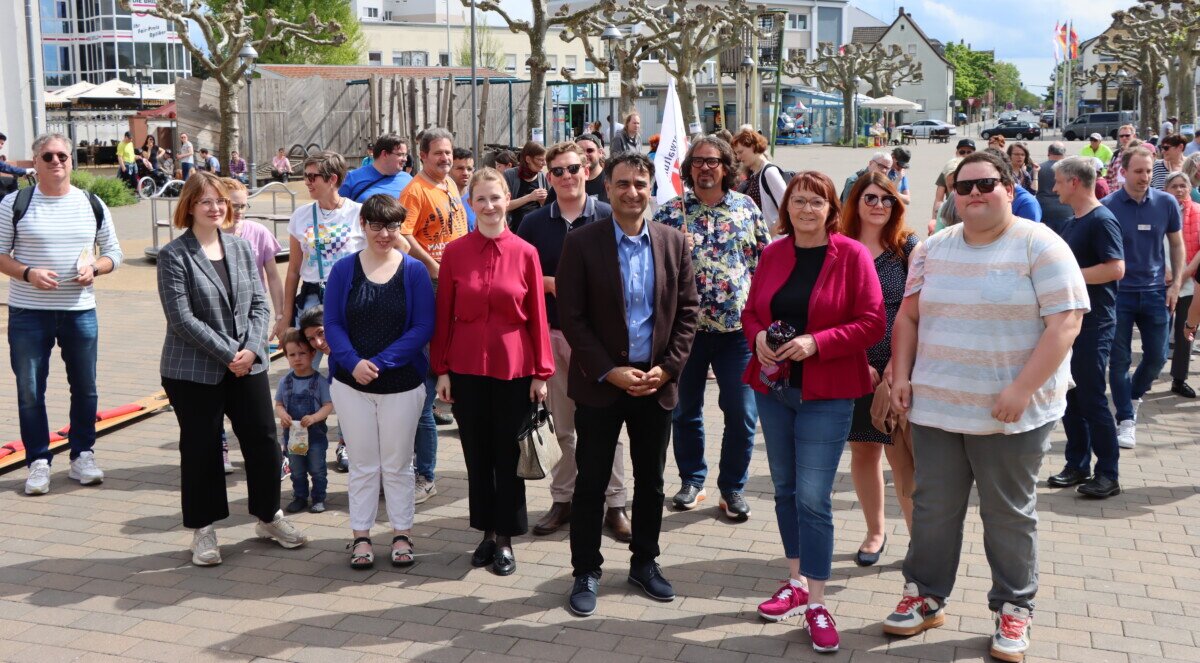 Der Erste Kreisbeigeordnete Adil Oyan und eine Reihe von Politiker*innen kamen zum Europäischen Protesttag auf den Groß-Gerauer Marktplatz, um ihren Einsatz für Inklusion und Gleichstellung von Menschen mit Behinderungen zu untermauern. Foto: Kreis Groß-Gerau