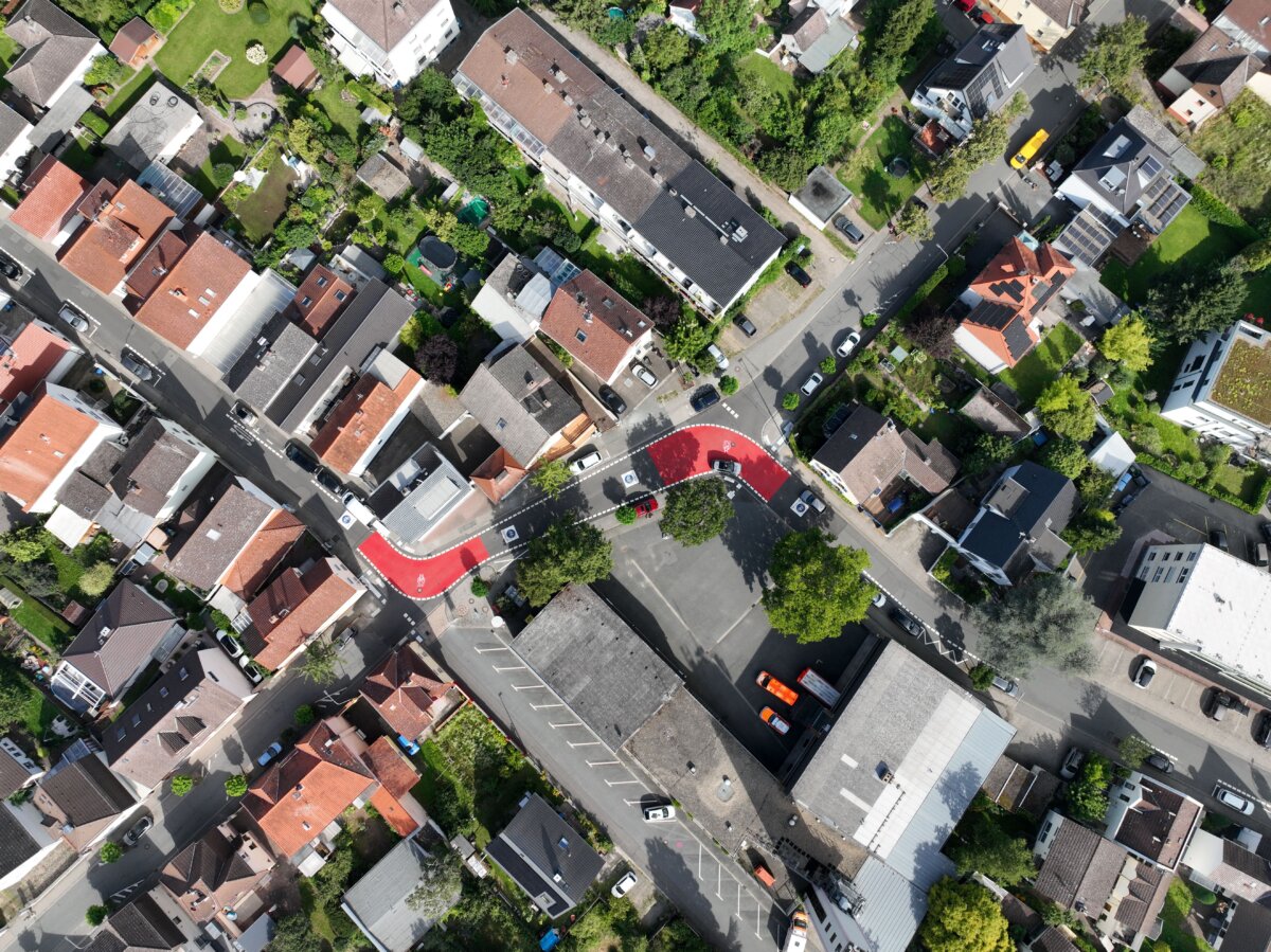 Straße zur fertigen Fahrradstraße. Ab diesem Zeitpunkt gelten die amtlichen