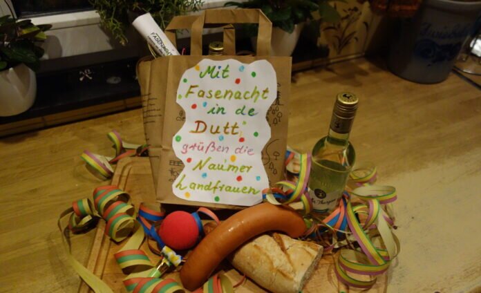 Nauheim – Da auch in diesem Jahr der närrische Kreppelkaffee der Nauheinmer Landfrauen im Cafe Stelzer Corona bedingt nicht stattfinden konnte, kam der Vorstand auf die Idee, „Fasenacht in de Dutt“ ins Leben zu rufen.