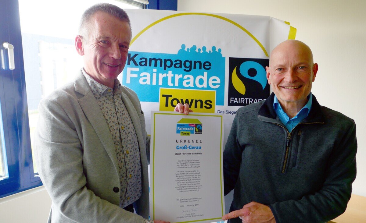 Seit acht Jahren erfüllt der Kreis Groß-Gerau die Bedingungen eines Fairtrade-Kreises: mindestens 36 Einzelhandelsgeschäfte und 18 Gastronomie-Betriebe bieten mindestens je zwei fair gehandelte Produkte an. Außerdem gibt es mindestens zwei Schulen, zwei Vereine und zwei Kirchengemeinden, die durch Aktionen den Gedanken des fairen Handels bekannter machen. Die von dem Verein TransFair beförderte Kampagne Fairtrade-Towns gibt es mittlerweile in rund 30 Ländern mit mehr als 2200 Fairtrade-Towns.