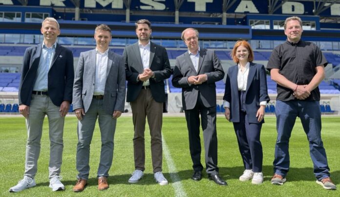 Die Wissenschaftsstadt Darmstadt wird in Kooperation mit dem SV Darmstadt 98, dem Hotel Jagdschloss Kranichstein und der Stiftung Hessischer Jägerhof künftig Trauungen des Standesamtes in der Lilienloge des Merck-Stadions am Böllenfalltor und dem Jagdschloss Kranichstein anbieten. Darauf hat sich der zuständige Dezernent, Stadtrat Paul Georg Wandrey, mit Kooperationspartnern verständigt und die Pläne am heutigen Dienstag, 6. Mai, bei einem Ortstermin am Böllenfalltor gemeinsam mit Michael Weilguny, Geschäftsführer des SV 98, Stefan Stahl, Geschäftsführer des Hotels Jagdschloss Kranichstein und Philipp Nützel, stellvertretender Geschäftsführer der Stiftung Hessischer Jägerhof vorgestellt.