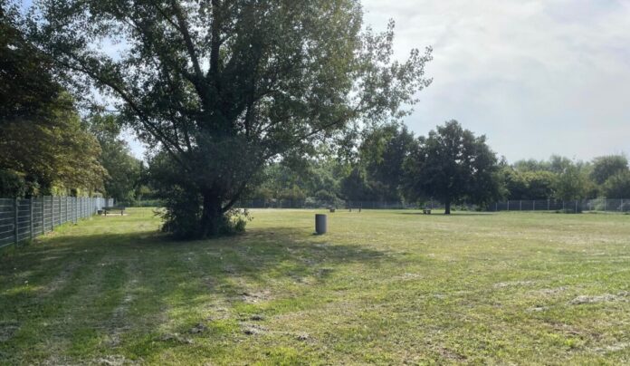 Die rund 5.400 Quadratmeter große Hundewiese war im Jahr 2020 kurzfristig und mit begrenztem Budget errichtet worden. Dies hatte zur Folge, dass der nur 80 Zentimeter hohe Zaun von manchen Hunden einfach übersprungen wurde und sich die Törchen aufgrund ausgeschlagener Gewinde und Bohrungen nicht mehr reparieren ließen. Zwischen 2023 und 2024 wurde die Wiese bereits aufgewertet, etwa durch den Einbau von Bänken, Natursteinpflaster, Kiesdecken und einer Buddelkiste für die Hunde.