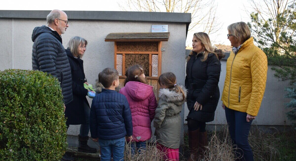 In den neuen Insektenhotels sollen Wildbienen einen Platz zum Nisten finden, zum Beispiel Mauerbienen. Diese Wildbienen–Art ist etwa so groß wie Honigbienen, aber deutlich anders gefärbt. „Mauerbienen sind sehr gute und effiktive Bestäuber für Obstbäume. Sie fliegen etwa von März bis Juni“, erklärt Martina Polensky bei der Übergabe den Projektverantwortlichen sowie den KiTa–Kindern, die auch in Zukunft ganz genau beobachten werden, was in ihren Insektenhotels vor sich geht.