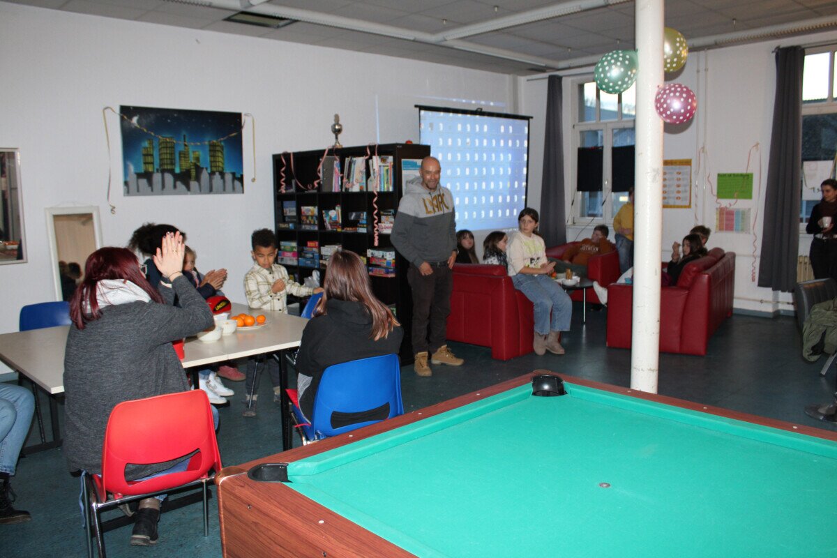 In einer Diashow wurden die schönsten Momente in der Geschichte des Gräfenhäuser Jugendzentrums auf einer Leinwand gezeigt. Für die rund 20 aktuellen und ehemaligen Besucherinnen und Besucher gab es außerdem leckere Snacks und Getränke.