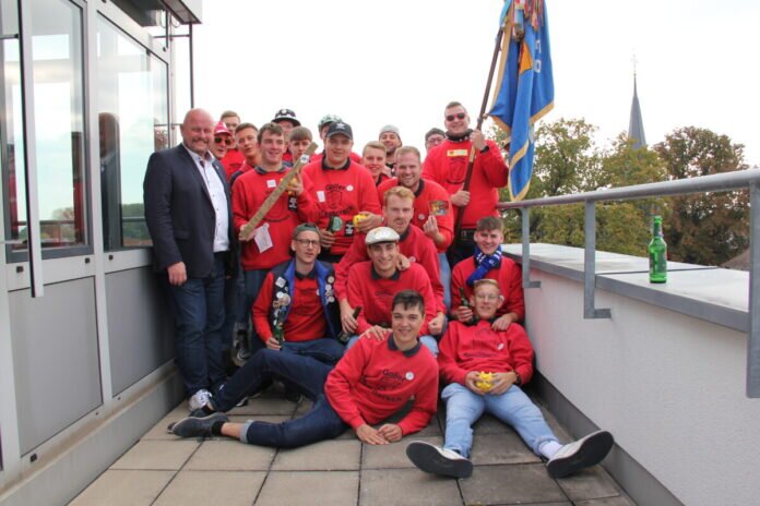 RIEDSTADT – Laut singend und ihre Fahne schwenkend meisterten die Goller Kerweborsch am Kerwemontag alle drei Stockwerke des Riedstädter Rathauses und zogen zu ihrem traditionellen Empfang in den Sitzungssaal der Verwaltungszentrale ein.