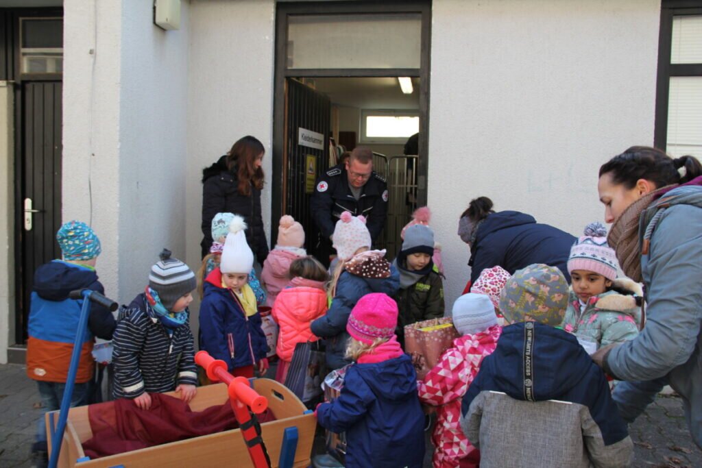 „Ich bin der Leon. Vielen Dank für eure Spenden, liebe Kinder. Das ist eine ganz tolle Hilfe für Menschen, die sie sehr benötigen und die sich riesig über eure Spenden freuen werden“, begrüßt der stellvertretende Leiter des DRK-Ortsvereins Riedstadt-Stockstadt Leon Bau die Kinder. Denn die Kinder der Kita Sonnenschein haben zuhause ihre Sachen durchgeschaut und sich von vielen ihrer Spielsachen und Kleidung getrennt. Die Eltern haben dann oftmals noch Hygieneartikel, nicht verderbliche Lebensmittel und Süßigkeiten dazu getan.