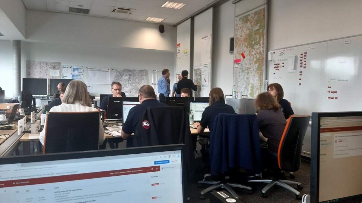 Wie viele Feuerwehrleute aus welchen Orten werden gebraucht, woher kommt das Löschwasser? Wo sollen die Bereitstellungsräume entstehen, an denen die Einsatzkräfte auch verpflegt werden können, welche Informationen und Warnungen müssen wann und über welche Medien an die Öffentlichkeit gegeben werden? Welche Straßen und Bahnlinien sind wegen des Feuers und der Brandbekämpfung zu sperren? Braucht es Hubschrauber von der Polizei für Luftbilder? Müssen Gebäude oder ein Campingplatz geräumt werden? All diese Fragen beschäftigen das Team des Führungsstabs in einem solchen Fall.