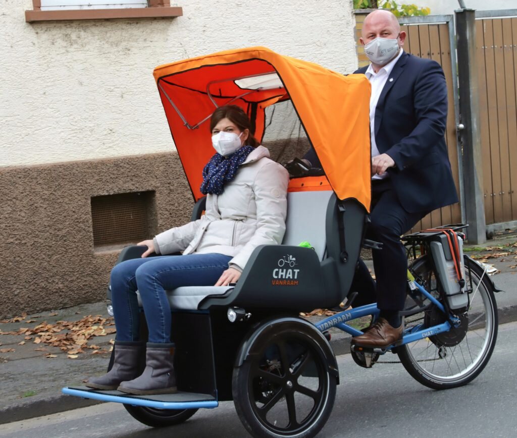 „Obwohl es Winter war, haben unsere Klienten diese Fahrten sehr genossen, es war für sie eine unglaubliche Bereicherung“, erzählt Stefanie Drozdzynski, Leiterin der Beratungsstelle für ältere Menschen Riedstadt und Stockstadt am Rhein, zu der auch die Atempause gehört. Sie kümmert sich um Menschen mit demenziellen oder andern hirnorganischen Erkrankungen und ihre Angehörigen. Auch die Rikscha-Fahrten, die Bürgermeister Marcus Kretschmann in der Vorweihnachtszeit für alleinstehende Menschen angeboten hatte, kamen sehr gut an. Dank der Aktion des Landes Hessen „Radfahren gemeinsam neu entdecken“ war dieser Probelauf kostenlos.