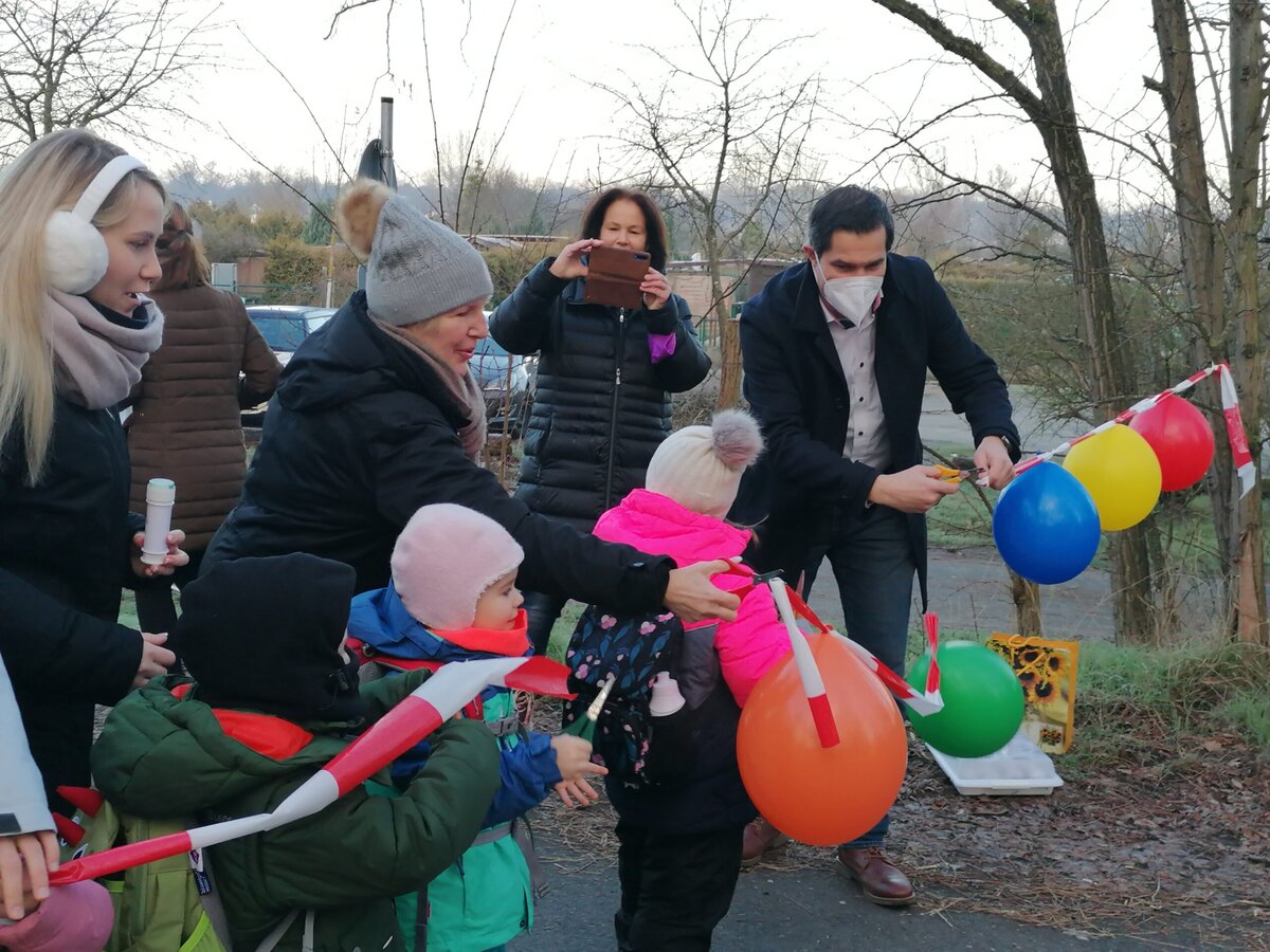 „Im März 2021 ist die Idee der Wald-Kita aus einem Schnellgedanken heraus geboren worden und nicht einmal ein Jahr später darf ich heute an dieser Stelle Eltern, Kinder und alle Verantwortlichen zur Einweihung begrüßen“, freute sich Bürgermeister Jan Fischer. Treffpunkt für die Eröffnungszeremonie war die Autobahnbrücke am Klangweg, denn dort verabschieden sich die Kinder jeden Morgen von ihren Eltern und starten gemeinsam mit ihren Erzieherinnen in Richtung des Odenwaldklubhauses und die angrenzenden Waldgebiete.