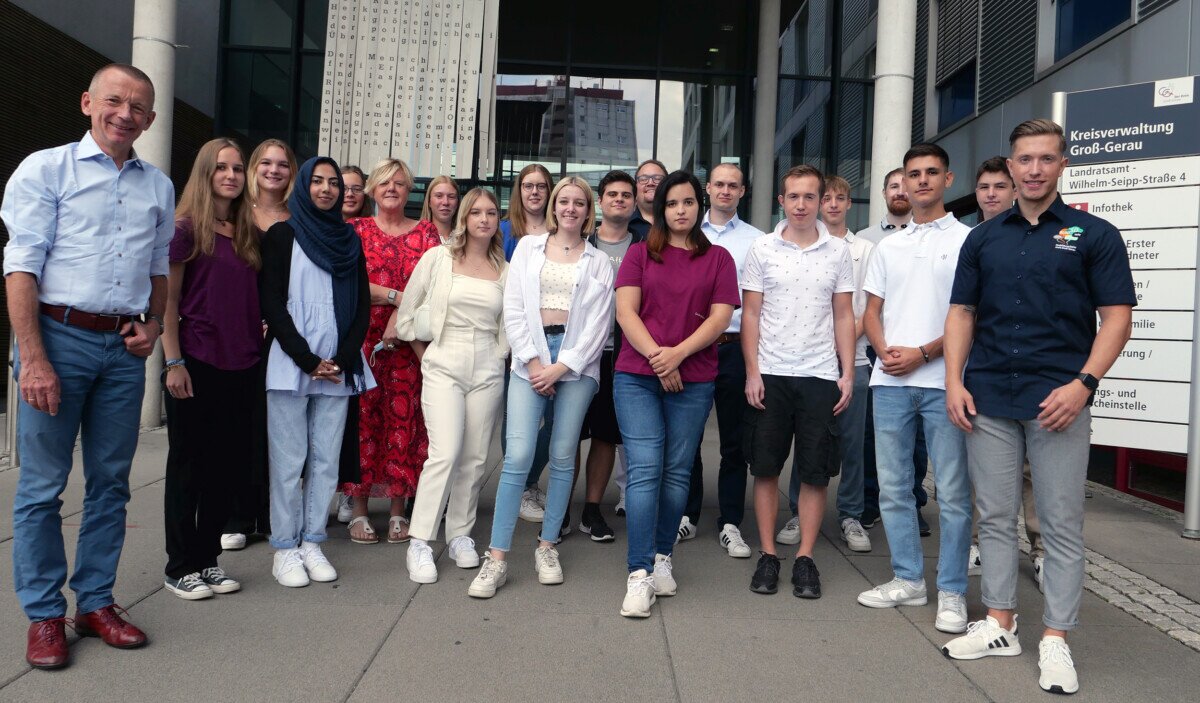 Mit guten Wünschen für Ausbildung und Studium verabschiedete Will die neuen Mitarbeitenden der Kreisverwaltung. Sie machten sich nach dem Frühstück erst einmal auf den Weg in den Vogelsberg. Im Feriendorf des Kreises Groß-Gerau in Ober-Seemen werden sie ein paar Tage verbringen, um sich gegenseitig kennen zu lernen. Zurück in Groß-Gerau beginnen sie in den Abteilungen dann mit ihrer Fachausbildung.