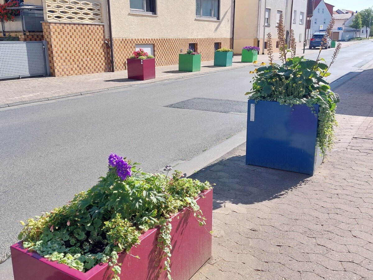 WEITERSTADT – Die einem Raser zum Opfer gefallenen Blumenkübel in der Schulstraße sind kürzlich durch neue, bunte Pflanzgefäße ersetzt worden. Die Anlieger zeigen hier großes Engagement und Geschick in Bepflanzung und Pflege.