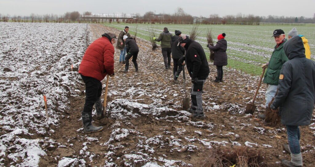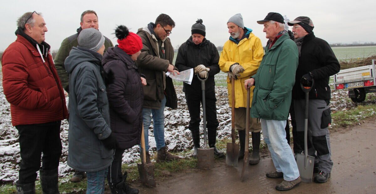 RIEDSTADT – Ausgestattet mit Spaten, festem Schuhwerk und Arbeitshandschuhen versammeln sich einige Frauen und Männer aus Crumstadt unter Führung von Dieter Frey am Freitagvormittag am Rand eines Ackers in der Nähe der Pferdepension Kastanienhof. Begrüßt werden sie auch von Holger Schanz, Fachgruppenleiter Umwelt der Büchnerstadt Riedstadt und Gerry Assmann vom Außendienst der Fachgruppe sowie Christina Kohlbrecher vom Landschaftspflegeverband Kreis Groß-Gerau (LPV).