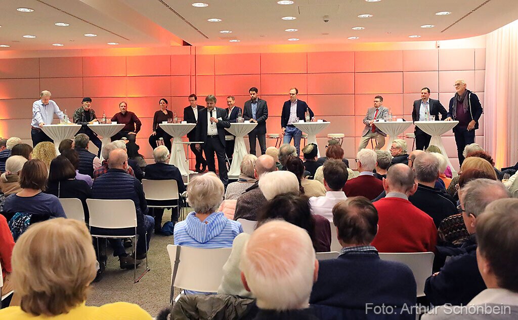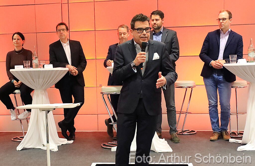 Die Eröffnung des Wahlabends erfolgt durch Oberbürgermeister Jochen Partsch, danach übernimmt Moderator Lars Hennemann und führt die Besucherinnen und Besucher durch den Abend.