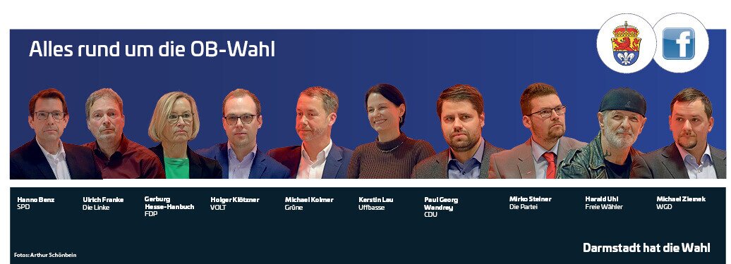 Das ist neuer Rekord für Darmstadt: Zehn Kandidatinnen und Kandidaten wollen neuer Rathauschef werden. Bei der letzten OB-Wahl 2017 traten neun Bewerberinnen und Bewerber an. Jochen Partsch (Die Grünen) kam damals auf 50,4 Prozent der Stimmen vor Michael Siebel von der SPD und sieben weiteren Kandidaten. Seit dem 6. Februar kann man die Briefwahl online beantragen. Bis zum 15. März und bei einer Stichwahl bis zum 29. März bleibt dieses Zeitfenster geöffnet. Sollte im ersten Wahlgang am 19. März keiner der Kandidierenden eine absolute Mehrheit erreichen, geht es für die beiden Bewerberinnen oder Bewerber mit den meisten Stimmen am 2. April in die Stichwahl. Im neuen M-Magazin (Erscheinungstermin Kalenderwoche 10) stellt Hans-Werner Mayer die Kandidaten vor: