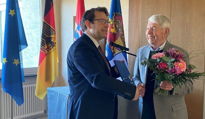 In Anerkennung seiner über fünfzig Jahre andauernden Tätigkeit als ehrenamtlicher Schöffe beim Ortsgericht Darmstadt-Wixhausen wurde Georg Laumann am heutigen Montag (17.) von Oberbürgermeister Hanno Benz der Ehrenbrief des Landes Hessen überreicht.